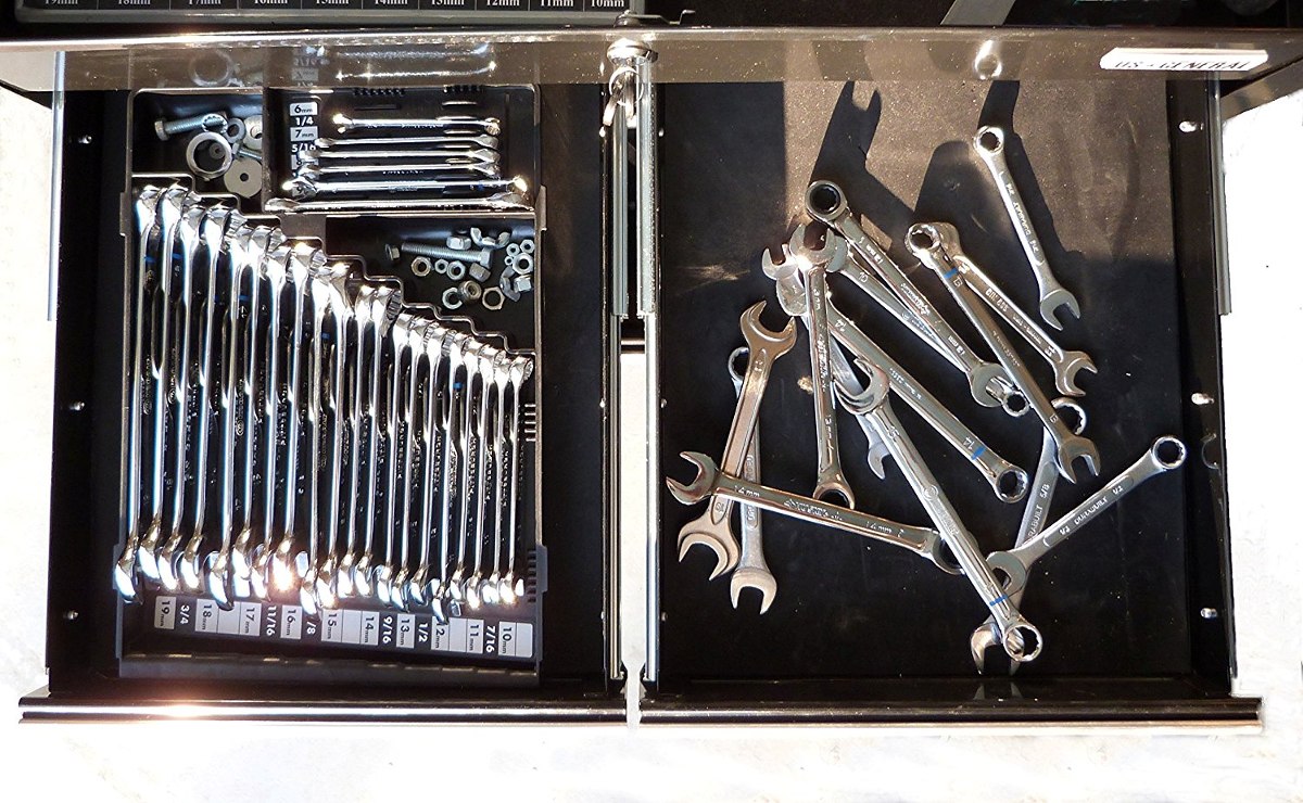 Slide – Flip – Tienda Tan simple como eso !; Tiene capacidad para llaves de 7 mm – 1/4″ (longitud de hasta 6,5” ) de hasta 19 mm – 3/4″ (longitud de hasta 9,5” ); Funciona para SAE y llaves métricas; Mide 13.5″ x 10″ x 1,5″ – compacto y portátil; Llaves excluidos! La bandeja Llave de la herramienta Clasificador – hecho en los EE.UU. – es compacto, portátil y cabe en la mayoría de los cajones de herramientas estándar en el pecho. Hasta 28 llaves de 7 mm – 1/4″ (longitud de hasta 6,5” ) a 19 mm – 3/4″ (longitud de hasta 9,5” ) se pueden almacenar. La característica única es una barra de ordenación integrada – deslizar la llave, darle la vuelta y se almacena en el lugar correcto. La barra de clasificación acomoda tanto SAE y métrica. Las medidas de la bandeja 13.5″ x 10″ x 1,5″ y está hecho de ABS resistente. Este organizador es una versión mejorada de la bandeja Sortatool anterior y funciona mejor con las llaves más cortas. Los comentarios destacaron la calidad del producto y su capacidad de almacenamiento. Esta bandeja es grande para cualquiera con las llaves repartidos en cajas de herramientas o cajas. Tenga en cuenta que las llaves no se llevan a cabo en el lugar en el organizador! Adicional Filtrado Todos nuestros productos son de Estados Unidos SKU 10011825504