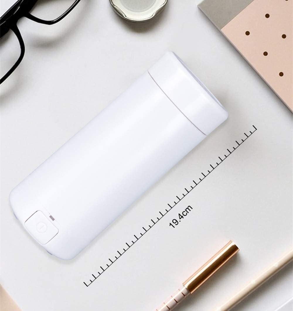 Tiene una protección de diseño impermeable, la parte inferior es antideslizante y la estabilidad es buena. Tamaño pequeño, peso ligero, fácil de llevar.; Pequeño y portátil, puedes llevarlo contigo y no gotee agua en tu bolsa, puedes disfrutar de agua caliente, té y café en cualquier momento, o preparar leche para el bebé.; Utiliza un diseño de aislamiento térmico de doble capa, seguro y no caliente. Interruptor de un botón, calentamiento rápido, apagado automático.; Adopta un proceso de formación de perforación y estiramiento sin costuras, forro interior sin costuras, resistente a la suciedad, evitando el crecimiento bacteriano y fácil de limpiar.; El interior del hervidor adopta una placa de calefacción de acero inoxidable, rápido de calentar. Hervidor de plástico de alta calidad, resistente a altas temperaturas, seguro, no tóxico y de larga duración. Specification: Material: Stainless Steel Rated power: 110V Power: 300W Scale mark: Mark On The Inner Wall Capacity: 350ml Heating method: Electric Heating Tube Heating Additional function: Automatic Power Off/Anti-dry Burn/Overheat Protection Packing List: 1Portable Kettle 1Charging Cable 1English instruction manual IMPORTANT NOTE: 1. Before heating, take down lid to prevent steam from lifting the lid. 2. Stop heating once it reach a full boiling point, may looks slightly boiled but actually fully boiled already, to avoid water overflow and burn your hand. 3. Pls do not exceed Max Water level(350ml), Also, not below the Min Water level(120ml). 4. Pls unplug the power before pouring the water. 5. Dont put this bottle in water when cleaning. Todos nuestros productos estan en inglés SKU 91221010835