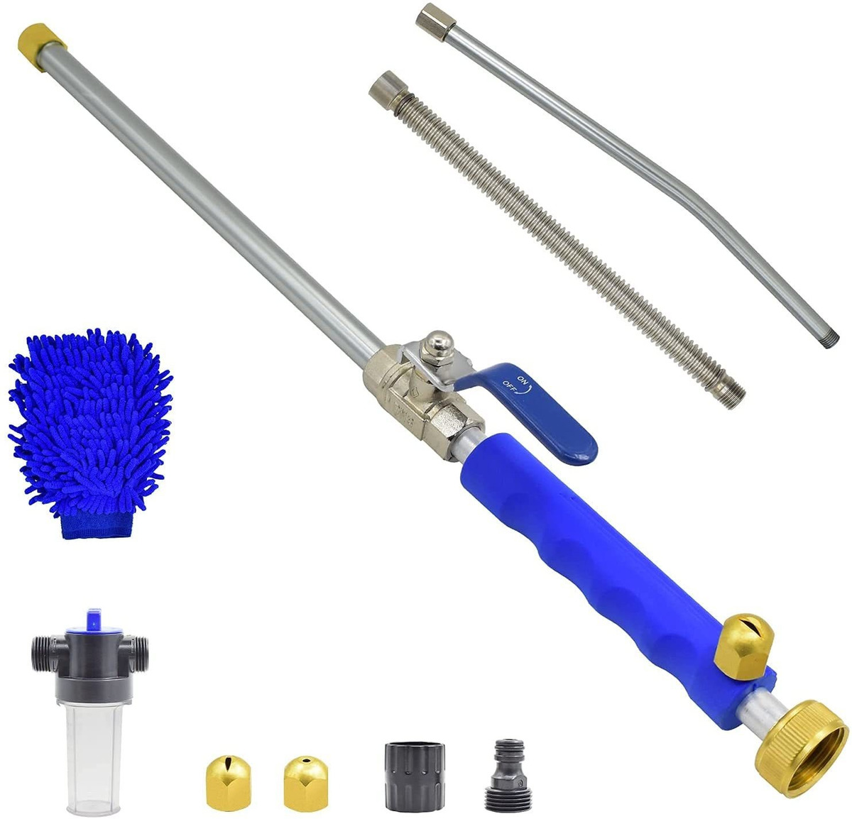Chorro de alta presión: la varita hidrolimpiadora Hydro Jet es adecuada para conectar todas las mangueras de jardín estándar de 0.7 in y otros tamaños con conectores de manguera estándar de 1.0 in.; Varilla de arandela flexible: la varita de lavado Hydro Jet se puede girar a cualquier dirección, se puede utilizar para limpiar la parte superior del coche, no necesita doblar el cuerpo. 2 boquillas diferentes se pueden utilizar para lavar el coche o regar el jardín.; Antióxido: manguera de jardín de latón de alta calidad, varita de lavado de aluminio, varilla extensible de acero inoxidable y boquilla de latón, que son resistentes al óxido y a la corrosión.; Varita de hidrochorro multifuncional: la varita de hidrolimpiadora Hydro Jet se puede utilizar para lavado de coches, limpieza del hogar, riego de jardín, riego agrícola, lavado de ventanas, riego de plantas y otras situaciones que desees.; 100% satisfacción: si usted por cualquier oportunidad, no le gusta nuestro limpiador de agua de alta presión, por favor no dude en ponerse en contacto con nosotros. Queremos que tu experiencia de compra sea lo más suave posible. La varita hidroeléctrica de la lavadora del chorro se utiliza para limpiar la suciedad y el moho en madera, coche, neumáticos, vidrio, hormigón, ventana, patio, cubierta. Manguera de jardín de chorro de energía de coches y limpia patios, calzadas y ventanas de segundo piso desde el suelo.