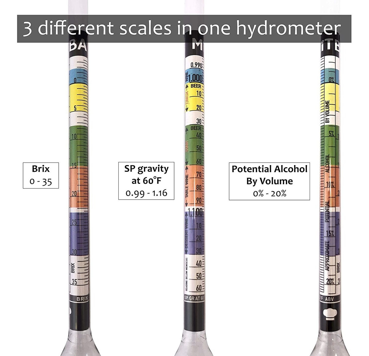 MANTENER A SU VERDADERO CRAFT! La fabricación de su propio alcohol es innovación, la independencia, la curiosidad y, sobre todo, la precisión. Si usted sigue una receta o elabora cerveza estilo libre, asegúrese de que conoce la ABV derecha, Brix y la gravedad antes y después de la fermentación. Nuestro código de color hidrómetro triple vidrio escala es el probador adecuado para usted cerveceros apasionados y entusiastas de la elaboración del vino, lo que ayuda a medir el alcohol, el azúcar y la gravedad de sus creaciones .; Te mereces lo mejor calidad y esto es lo que obtienes Trabajador fabricantes de vino y la cerveza no se conforman cuando se trata de sus equipos y suministros. Esta es la razón por nuestra hidrómetro está hecho de alta calidad y vidrio resistente que es el BPA, el mercurio y el plomo. Su nuevo hidrómetro es fácil de usar y leer, y perfecto para probar su cerveza, vino, hidromiel, Kombucha, sidra, alcohol ilegal y más, antes y después de añadir la levadura .; ENVASADO magnífico para un VIAJE SEGURO Si usted consigue para sí mismo o como regalo a su compañero de hogar-elaboración de la cerveza, siempre es agradable recibir en un embalaje hermoso y protectora. Nos aseguramos de que todos los productos de esta kit de inicio llegarán en perfecto estado y serán presentados en una caja hermosa y sólida para facilitar el almacenamiento, sin necesidad de perder una bolsa de plástico !; LA GRAVEDAD DE PRUEBA para dominar el último sistema Nos reunió a todos los componentes esenciales: además del hidrómetro de triple escala, hemos añadido una probeta graduada de la prueba de jarras, asegurándose de que tiene un recipiente apropiado para probar sus creaciones. También se encuentra, paso a paso las instrucciones claras con un derecho tabla de conversión en la caja. Por último, hemos añadido un cepillo de limpieza de abajo hacia alcanzador y paño de microfibra para el conjunto de limpiar el hidrómetro, vaso de precipitados tubo de ensayo, y las botellas de cerveza vacías .; Se sienten seguros con su compra! Cuando se compra hoy, que está protegido por nuestro 60 días, ninguno-pregunta-pidió, garantía de devolución de dinero y nuestro servicio al cliente fabuloso. Si por casualidad, recibirá el hidrómetro en nada menos que perfectas condiciones, puede estar seguro de que le enviaremos un reemplazo inmediato. Somos una empresa familiar y nos damos el 100% a cada uno de nuestros clientes únicos. Presione Añadir a la cesta con confianza! Todos nuestros productos estan en inglés SKU 4032124912