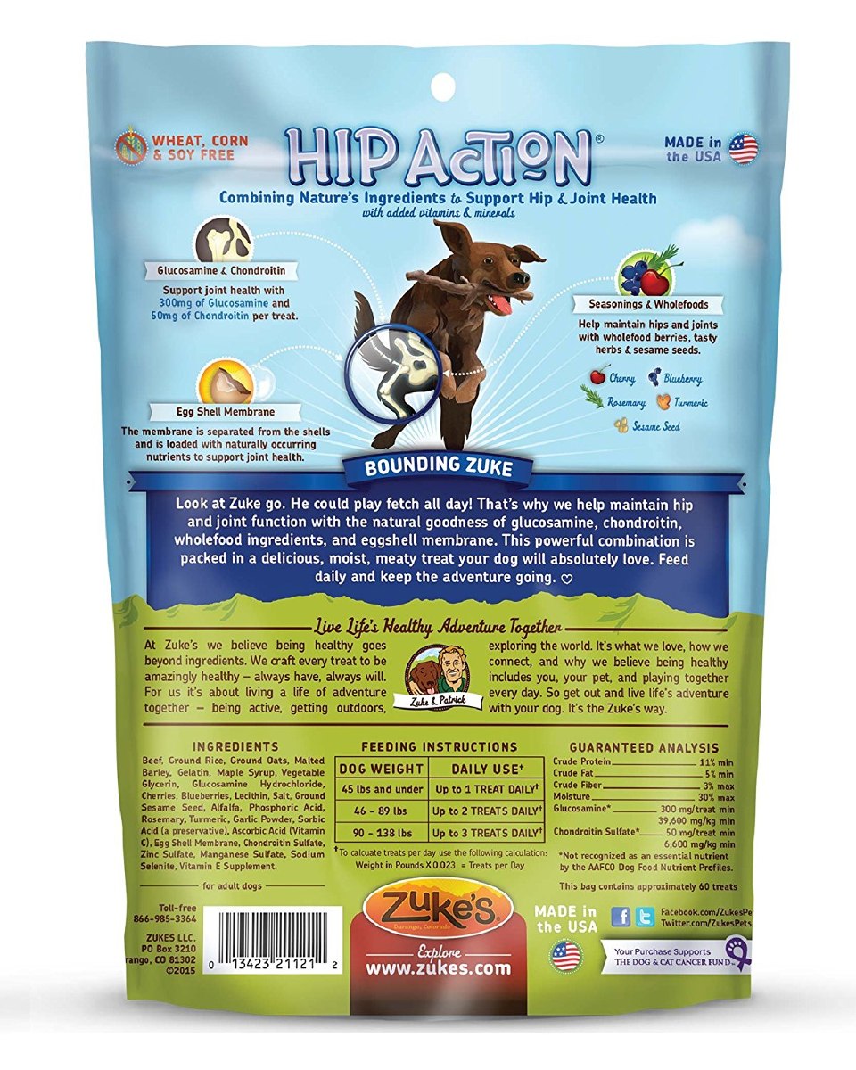 Mantenga a su perro listo para cualquier aventura lúdica que le espera con el hip Acción carne asada Receta perro trata de zuke. verdadera carne es el ingrediente # 1 en estas golosinas deliciosas naturales para perros, alimentos integrales y las bayas, hierbas sabrosas y semillas de sésamo en toda la ayuda que sirve para mantener su estilo de vida saludable. Con 300 mg de glucosamina y condroitina de 50 mg en cada uno se trata, esta receta ayuda a apoyar la cadera sana y la función articular. Formulamos esta receta sin el maíz, el trigo o la soja, para que pueda sentirse bien acerca de los bocadillos que alimentan a su amigo fiel todos los días. Con un sabor salado y textura húmeda, cada tratamiento ofrece la bondad de su perro espera. Las pequeñas piezas hacen que sea fácil para seleccionar el tamaño de la porción derecha sobre la base de su peso, y los sabores salados conseguir que entusiasmados con la merienda. Empaquetamos estas deliciosas golosinas para perros sanos en una bolsa resellable, que le da una forma conveniente para asegurar sus bocadillos están preparados cada vez que está.