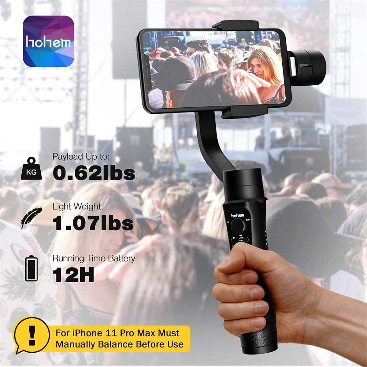 Especificaciones: Hohem – Estabilizador De 3 Ejes Para iPhone 11 Max Pro X Xr