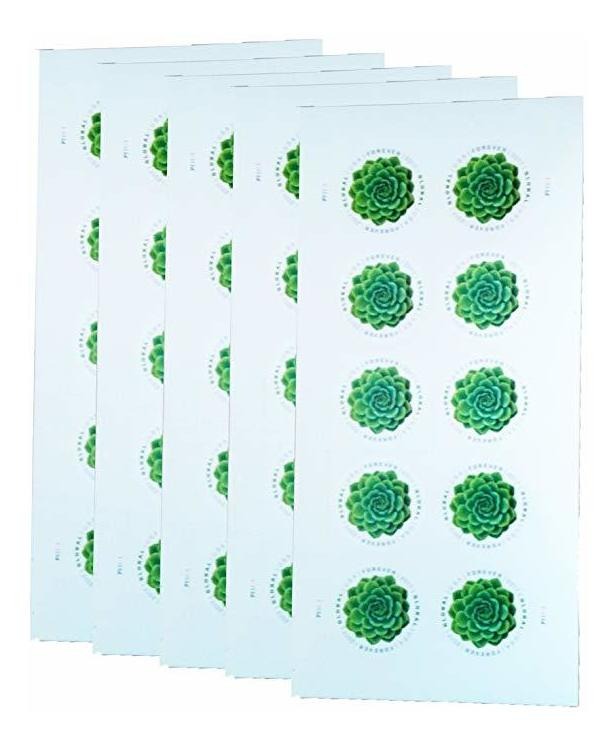 El arte sello ofrece una foto de primer plano vista del patrón de roseta elegante de las hojas de la Echeveria .; Este sello Global para siempre se puede utilizar para enviar por correo una carta de una onza a cualquier país al que de primera clase de servicio de correo internacional está disponible .; Estos sellos autoadhesivos están siendo emitidos en hojas de 10; Siempre igual en valor a la Primera Clase-Mail Internacional tasa actual de una onza Cantidad de Paquetes: 5