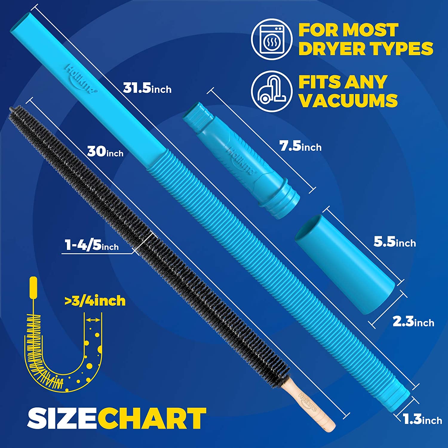 Holikme – Juego de 2 accesorios para aspiradora de pelusas de secadora y cepillo flexible para pelusas de secadora, kit de limpieza de ventilación de secadora, cepillo de fijación de manguera de aspiradora, azul