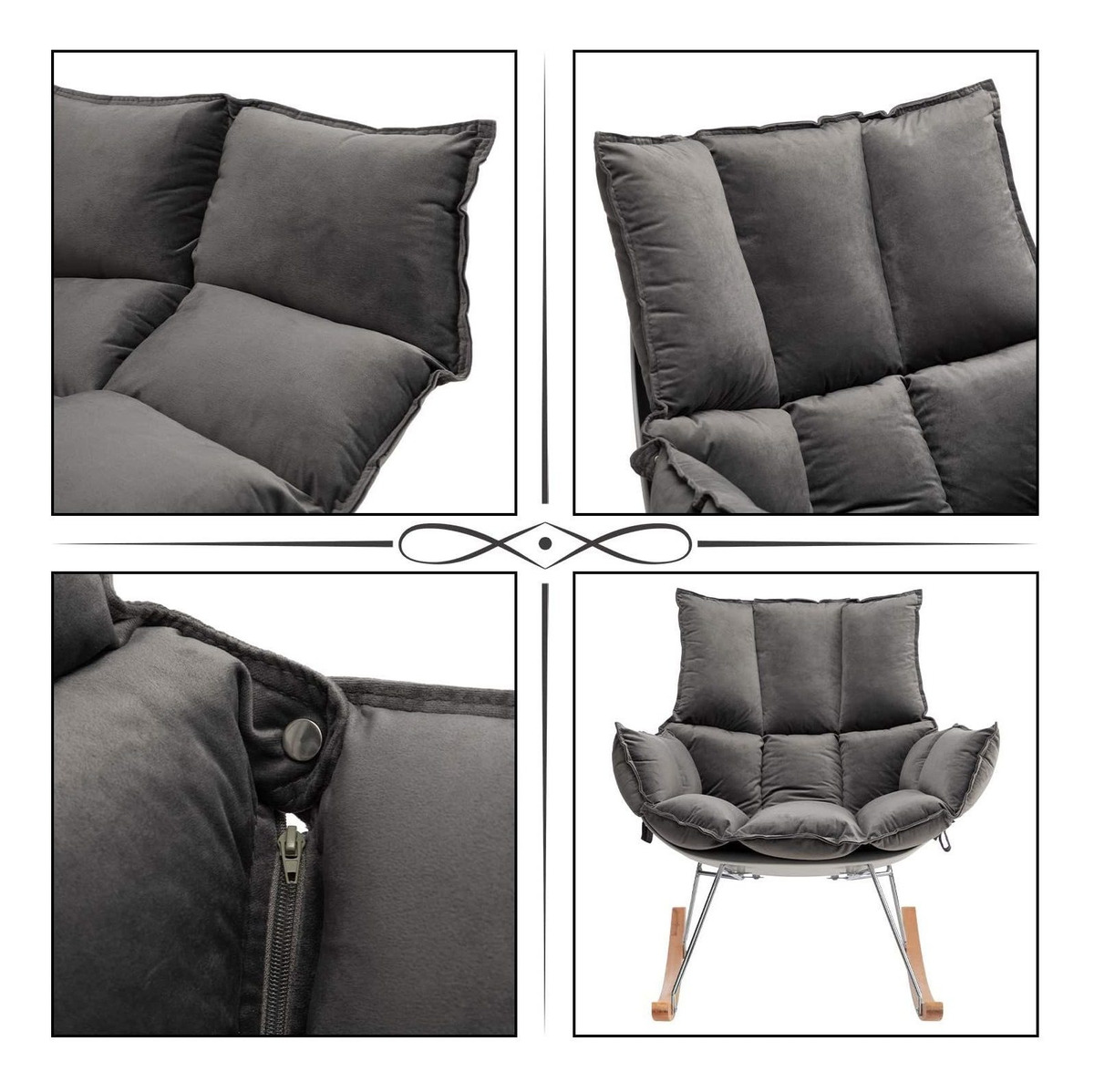 Esta mecedora tiene líneas suaves y aspecto moderno. El cojín grueso es suave y cómodo, fácil de desmontar y lavar. Proporciona un efecto de decoración perfecto para tu familia. Se puede utilizar en patio, balcón, sala de estar, oficina, etc.
