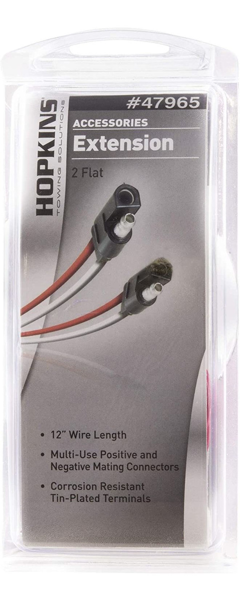 Multi-uso positivo / conectores de acoplamiento negativos; terminales de estañado resistentes a la corrosión; alambre de cobre de calibre 16; 12 pulgadas de longitud; Fácil de usar Hopkins Manufacturing Corporation hace que su experiencia de remolque simple y más gratificante a través de la innovación y el valor. Hopkins ofrece una variedad de soluciones de remolque, incluyendo kits de cableado del vehículo, adaptadores, conectores del vehículo y del remolque, sistemas de ruptura y mucho más. Hoy en día, más del 40 porcentaje de ventas al por menor categoría se genera a partir de las innovaciones Hopkins. Todos nuestros productos estan en inglés SKU 70720016722