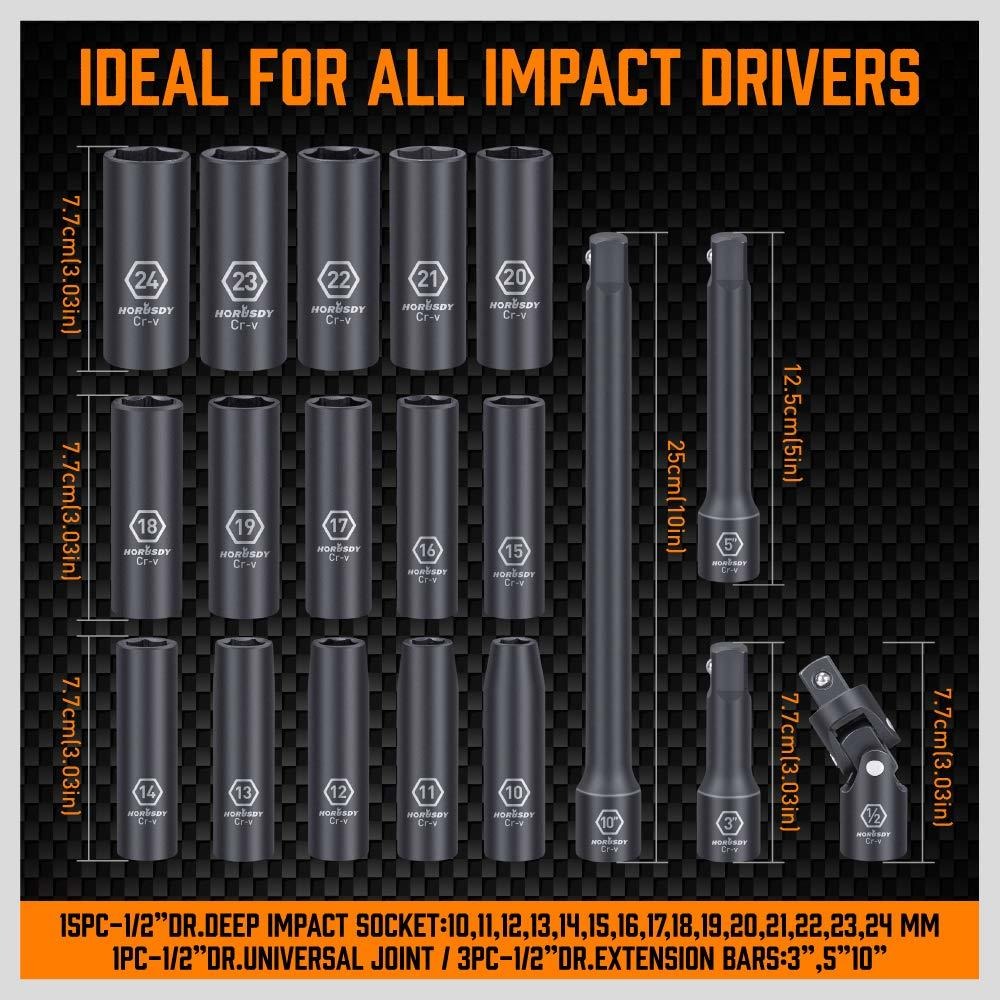 Specification: Horusdy De 1/2-pulgada Drive Deep Impact Juego De Dados, 19
