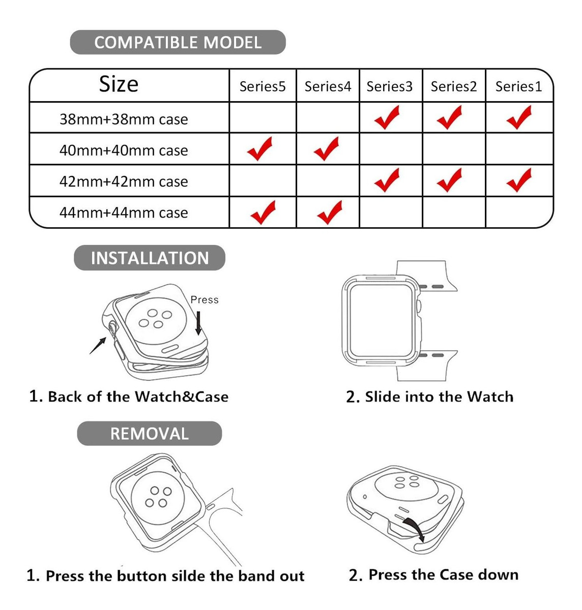 Cómodo y flexible: hecho de silicona suave de alto rendimiento, flexible y cómodo, se siente bien traerlo. Resistente a la suciedad y al agua. El paquete incluye 1 correa de reloj y 1 funda protectora. No es necesario comprar carcasa adicional para tu reloj. Aviso: No viene con protector de pantalla.; Diseño colorido: la correa de silicona tiene muchos tipos de patrones de moda que puedes elegir, lo que te permite personalizar el aspecto de tu reloj. Utilizando la tecnología de impresión avanzada se asegura que el color del patrón en el extensible no se decolora con facilidad.; Funda de poliuretano termoplástico de alta calidad: la funda evita que tu reloj se raye. Recordatorio: Debido a la naturaleza del producto, éste no se pega a la pantalla, lo que puede causar que se acumule humedad entre la carcasa y la pantalla del reloj después de las actividades deportivas o el baño. Utiliza un trapo para secarlo para que recupere la sensibilidad táctil.; Modelos y tamaños compatibles La correa y la carcasa son perfectamente compatibles con Apple Watch Series 5/4/3/2/1, 1.50 pulgadas (38 mm) 1.65 pulgadas (42 mm) compatible con Apple Watch Series 3/2/1 de 1.57 pulgadas (40 mm) 1.73 pulgadas (44 mm). Compatible con Apple Watch Series 5/4. Tamaño ajustable entre 5.5-7.9 (14 cm-20 cm); Regalo perfecto Esta correa de silicona para reloj deportivo es un regalo perfecto para Navidad, aniversario, cumpleaños, día de San Valentín o día de la madre. Todos nuestros productos estan en inglés SKU 91221080545