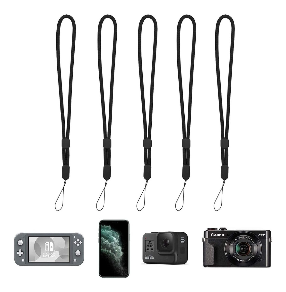 Amplia Aplicación: Las Correas de muñeca Hukado se ajustan Perfectamente un iPhone, Samsung, Teléfonos Móviles, Camara, linterna, llavero, Controlador USB y Mas Dispositivos Portátiles .; Alta Calidad: Las Correas de muñeca Hukado ESTÁN Hechas de nailon Duradero, lo Suficientemente fuerte para USAR en any Lugar .; Botón Móvil: Correas de mano con Botón Móvil Duradero, fijan Más TAMAÑOS SEGÚN necesites .; Portátil: peso ligero y Fácil de Conectar, Lo Que PUEDE mantener tus Objetos pequeños Seguros y a mano .; Tamaño Largo: LA LONGITUD ES totales de 9,5 y en la correa de mano de 6,5 pulg. Tamaño: Paquete de 5 | Color: Negro