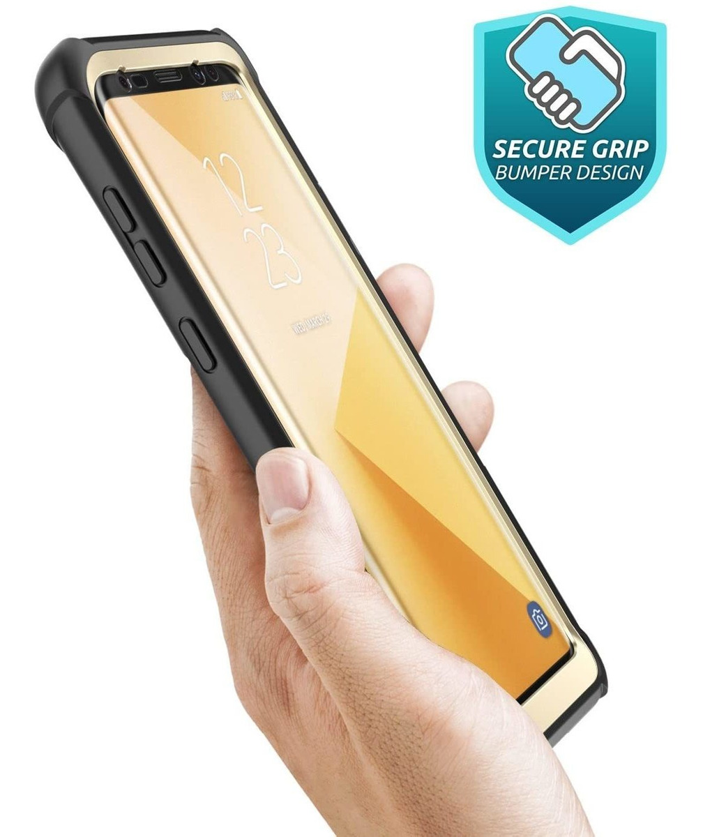 Funda de cuerpo completo con protección de 360 grados, un parachoques de TPU resistente a caídas envuelve toda la superficie de tu dispositivo.; Protector de pantalla integrado que evita arañazos y rasguños sin tener que tener sensibilidad táctil.; Placa trasera transparente construida para no añadir demasiado volumen.; Las esquinas de la funda proporcionan una mayor protección contra caídas accidentales.; Compatible solo con Samsung Galaxy S9 Plus. No es compatible con Samsung Galaxy S8/S8/ S9. Color:Oro