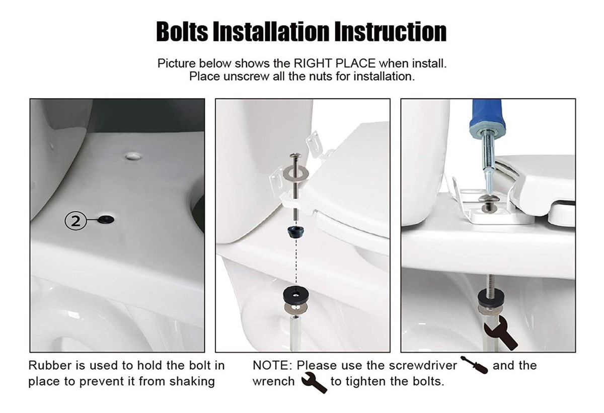 Kit de pernos Duradero: 2 tornillos para asiento de inodoro, el MAS Gruesos, Más fuertes y Estables; Material de Alta Calidad: el material de Evita de óxido de metal y el Es Fácil de desmontar y sin Dana Las contradictorio del inodoro; Fácil de Instalar: Sujeta de forma segura el asiento del inodoro al inodoro, buen accesorio para Reparar el asiento del inodoro; El paquete Incluye: 2 pernos de acero inoxidable, 2 Tuercas de bloqueo extralargas, 4 arandelas de goma negras, 4 arandelas planas. Este es accesorio ONU Perfecto Para Tu inodoro; Aplicación y servicio al cliente: Este juego de tornillos y Tuercas para asiento de inodoro Se Puede APLICAR para la Mayoría de inodoros Estándar Tamaño: Talla única | Multicolor