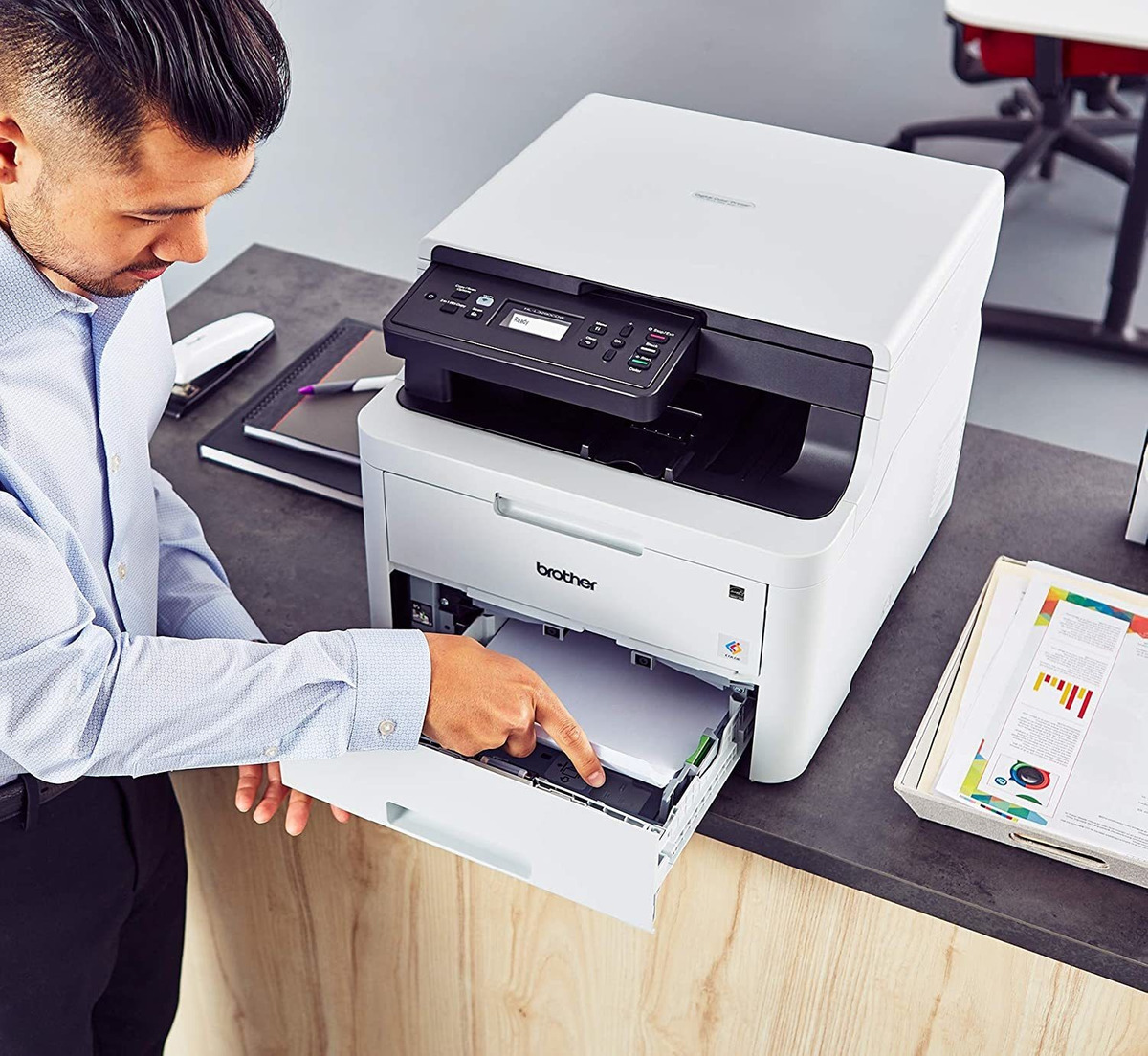 Impresión rápida para mantenerse en movimiento: la impresora Brother HLL3290CDW color digital le permite hacer las cosas con hasta 25 páginas por minuto velocidad de impresión; DISFRUTE asequible y flexible Color: imprime asequible de calidad profesional, rico, documentos en colores vivos con calidad de impresión láser. La bandeja de papel ajustable 250 hoja ayuda a minimizar las recargas y las asas manuales ranura de alimentación varió necesidades de impresión; PRODUCTIVO Y efficienct: Una plataforma plana ofertas de cristal de escaneo de copiado y escaneo conveniente y 2 exhibición del LCD proporciona acceso a la función eficiente. Compatibilidad de dispositivos móviles de aire de impresión, Google Cloud Print, Brother iPrint & Scan, Mopria, Wi-Fi Direct; IMPRESIÓN Y Conéctese a su manera: ofrece la impresión inalámbrica HLL3290CDW dispositivo móvil (1) y construido en interfaces inalámbricas, Wi-Fi Direct y USB; PARA USO CON tóner originales de Brother: TN223BK, TN223C, TN223M, TN223Y, TN227BK, TN227C, TN227M, TN227Y; Reducción / ampliación: 25 por ciento 400 por ciento; AMAZON DASH REPOSICIÓN HABILITADA: Tras la activación, Amazon Dash Reposición mide el nivel de tóner y los pedidos de más de Amazon cuando es baja; NOTA: Por favor consulte el manual de usuario proporcionada como un manual en formato PDF en la sección de descripción del producto Todos nuestros productos estan en inglés SKU 6042012527