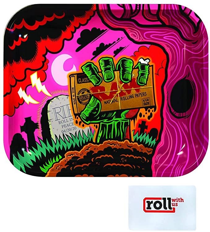 RAW zombi – Bandeja para mentiroso; Hecho de metal de Duradero .; Esquinas curvadas .; Lo Suficientemente grande para todos tus suministros .; Longitud: 13,5 en Ancho:. 11,0 en Altura:. 1.0 en. Bandeja de laminación cruda de metales grande