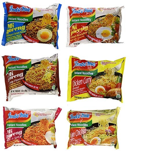 5 de cada sabor: pollo barbacoa, cebolla pollo, pollo al curry, fideos fritos, Satay, caliente y picante; Degustar cada sabor antes de Comitte a una caja entera Indomie Mi Goreng es una línea de productos de la marca Indomie por la empresa Indofood, el mayor fabricante de fideos instantáneos del mundo. Mi Goreng en Indonesia y Malasia, significa «tallarines fritos». Un ser querido plato en Australia, Asia, África y muchos países europeos. Todos nuestros productos son de Estados Unidos SKU 26091811734
