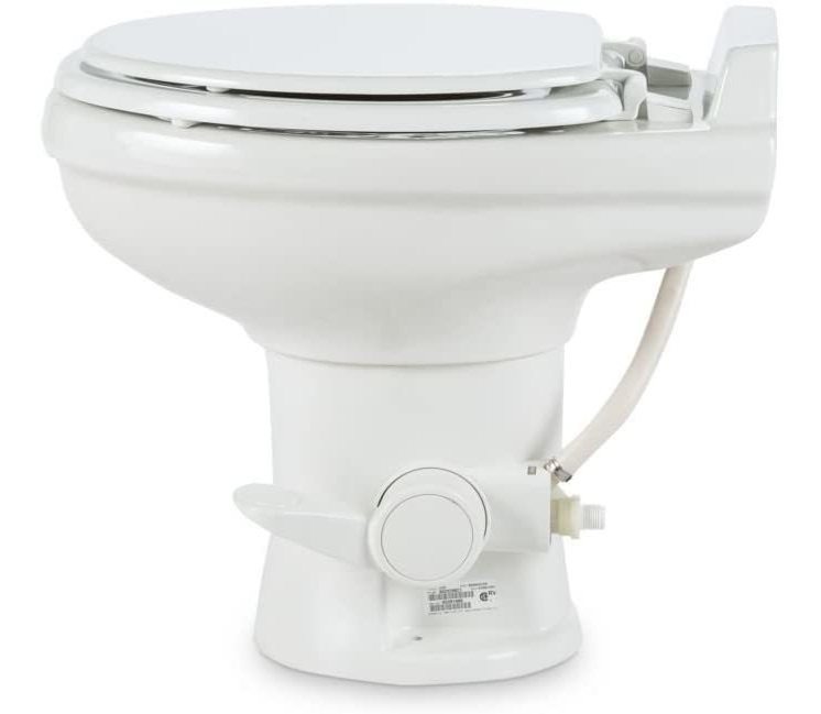 Deep, 100% Vitreous Ceramic Bowl | Full-Size Residential Style Wood Seat; Dimensions 22 L x 14.75 W x 19.75 H | Weight 36.99 lbs. | From the center line of the bolts to the back of the base at the bottom this toilet is 11; Rim Design Prevents Spills | Gravity Flush; Efficient with Water at Only One Pint per Flush; Ergonomic Foot Pedal: Press Partially to Add Water, Press Fully to Flush Enjoy all the best features of a household toilet in your RV with a Dometic 320 series toilet. The elongated, deep ceramic bowl and enameled wood seat offer comfort that far surpasses most smaller RV toilets. The pressurized full-rim flush delivers a bowl-clearing rinse every time. Ergonomic one-direction foot pedal action results in easy, hands-free flushing for added sanitary benefits. The sparkling vitreous ceramic bowl keeps its original beauty for years. The 300 series is available in white or bone colors, and standard or low-profile heights. Deep ceramic bowl for sparkling, scratch-free, long-lasting performance. 360 RIM WASH action for complete rinse. New elongated bowl and full-size enameled wood seat. Tall, 18-inch height with comfortable full-size seat. Extremely low flush technology uses as little as 1 pint/.5 liter per flush. Ergonomic flush pedal, press partially to add water; press fully to flush. Also available in low-profile height 14-inch tall. Two-bolt installation with quick access water connection. Available in white or bone colors Easy serviceability with modular components. Dometic. The ergonomic height offers easy accessibility for people of all ages, and the fully enclosed rim delivers a full-circumference flush that cleans the entire bowl every flush Todos nuestros productos estan en inglés SKU 4022204917