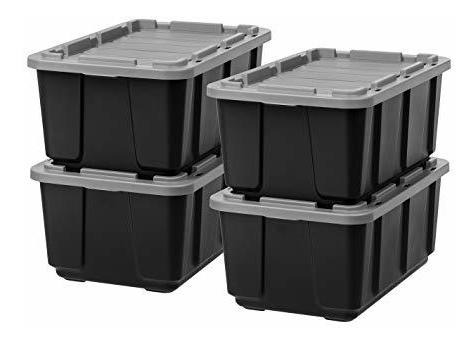 Mantenga sus contenidos seguros y protegidos con estas bolsas de plástico resistente difíciles; Las ranuras y orificios de bloqueo en la tapa le ayudará a mantener sus contenidos en las cajas de plástico de alta resistencia adicional a salvo y segura; La tapa profunda hace segura apilar múltiples contenedores de plástico simple y fácil; La capacidad de 27 galones es ideal para cualquiera de sus necesidades de almacenamiento de gran tamaño; Dimensiones: 30. 25 “L x 20. 25” W x 14. 13 “H; Dentro Dimensiones: 25. 0” L x 15. 0 “W x 13. 0” H Color: Negro / Gris
