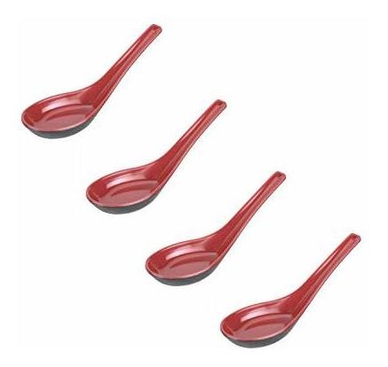Set de cuatro cucharas; Dimensión: 5.5in L; Hecho de 100% puro melamina no tóxico; A prueba de calor a 212 grados Fahrenheit; Apto para lavavajillas, rotura y resistente a arañazos Color: Rojo / Negro