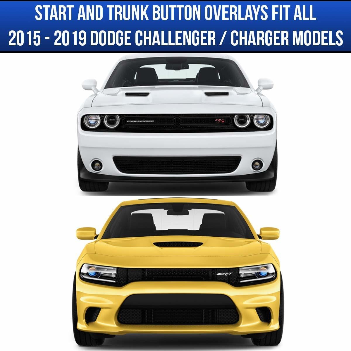 REVION Autoworks compatible con botón 2015-2019 Dodge Charger / Challenger de arranque de la etiqueta de superposición | 3D de metal con tapa SRT Red Style Start Stop Pegatina Emblema | Push to Start Button Badge cubierta Accesorios Negro raya Todos nuestros productos estan en inglés SKU 601202459