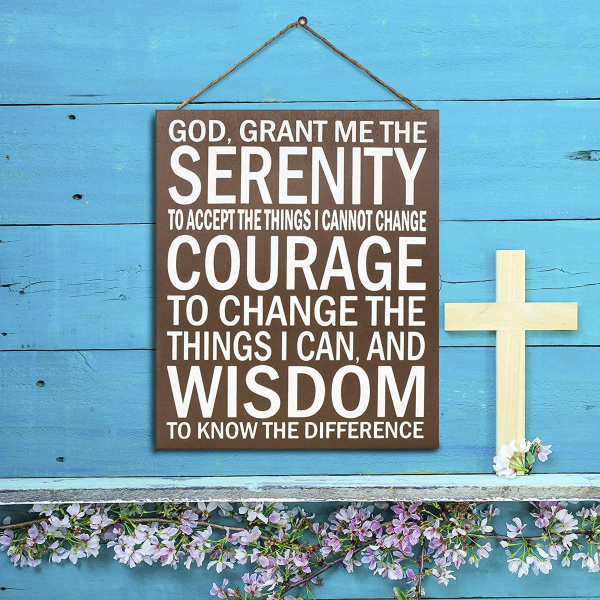 Características: hermoso acabado rústico de estilo granja añade un toque elegante a este letrero de oración de serenidad. Este letrero mide 10.0 x 12.0 x 0.2 in y viene con una cuerda de yute y un colgador de dientes de sierra para ofrecer múltiples opciones de visualización. La placa dice God Grant Me the Serenity to Accept the Things I Cannot Change Courage to Change the Things I Can, and Wisdom to Know the Difference; Ideas para regalar: es un regalo muy bonito para cualquier persona que necesite un signo motivacional religioso y especial para mantener con ellos como recordatorio diario. Una oración estimulante para alguien que pasa por la sobriedad: amigos, compañeros de trabajo, vecinos o miembros de la familia. Esta frase se puede considerar cristiana, religiosa y/o simplemente inspiradora en la naturaleza.; Acento estético para decoración de habitaciones: este letrero decorativo se adapta a la mayoría de estilos y espacios estéticos de decoración de habitación, que van desde decoración de dormitorio, decoración de cocina y decoración de sala de estar. Más ideas de exhibición son decoración de pared de granja, decoración bohemia, apoyada en un estante de esquina o estantería, parte de la decoración de campo, decoración de casa de campo y decoración moderna. Este hermoso letrero de cita se ve encantador colocado en una oficina en casa o junto con otras obras de arte de pared y será un recordatorio diario de lo que significa la oración de la serenidad para ti.; Material: nuestros carteles son de madera de alta calidad, lo que da a nuestros clientes un letrero de decoración duradero para el hogar que pueden apreciar a lo largo de los años. Nuestro proceso de fabricación consiste en el uso de impresoras UV de última generación, que secan al instante la tinta en cada letrero una vez que el proceso de impresión se haya completado. Proveemos de molinillos de madera que llevan material de madera de calidad. Nuestros carteles no están hechos de MDF ni utilizamos pegatinas. Los carteles están diseñados y producidos en Delaware Fabricado en los Estados Unidos.; Hecho a mano: nuestros carteles de madera están hechos a mano con cuidado por trabajadores estadounidenses. Cada cartel es cuidadosamente inspeccionado por un miembro del equipo de control de calidad asegurando que cada cartel pase nuestros altos estándares de calidad. Los carteles se empaquetan individualmente con materiales de protección antes del envío. El color y la textura pueden variar ligeramente de señal a letrero. Nuestros artículos pueden presentar características comúnmente encontradas en la madera, incluyendo: nudos, fisuras, rugosidad y grano de madera. Gracias por apoyar a nuestra pequeña empresa Todos nuestros productos estan en inglés SKU 91221018228
