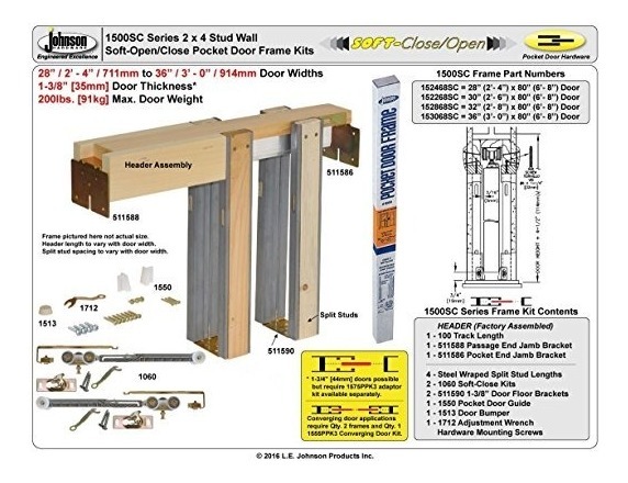 De calidad comercial – kit marco de la puerta bolsillo 1500SC serie, de grado comercial .; HEAVY DUTY – 200 libras de capacidad, para 2 x 4 interior construcción de la pared .; SUAVE ABRIR / CERRAR – Incluye asambleas suspensión de puerta-cierre suave y blanda abiertas .; Ajustable – Los marcos pueden ser cortados para adaptarse a cualquier tamaño de la puerta más pequeña .; HECHO EN EE.UU. – Fabricado en los Estados Unidos. Todos nuestros productos son de Estados Unidos SKU 8031804484
