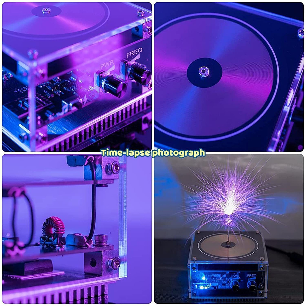 Cuerpo pequeño pero energía impactante: es lo suficientemente pequeño, solo 4.1 x 4.1 x 2.4 in, pero tiene una energía impactante. Gira la voz lentamente para evitar grandes golpes por el sonido del arco. Antes de encender, asegúrate de girar los 2 pomos en sentido contrario a las agujas del reloj hasta el extremo, simplemente evita un sonido repentino y fuerte para asustarte. El paquete contiene memoria flash USB, que contiene 45 canciones de música de onda cuadrada.; Mejor rendimiento: este tesla de música tiene un diseño de protección de circuito, no dañará el dispositivo de entrada, puede reproducir música de mejor calidad que el altavoz de plasma de arco, solo se puede reproducir música de onda cuadrada.; Bluetooth y fácil operación: es Bluetooth. No necesita conexión a tierra. Este modelo está especialmente diseñado para música de onda cuadrada. Solo puede reproducir música de onda cuadrada, y es perfecto. Puedes buscar y descargar la música de onda cuadrada en línea. Manual detallado. Plug and Play; Diversión infinita: este tesla musical tiene la función de transmisión inalámbrica y altavoz, puede iluminar tubos gaseosos y tipos de burbujas. Es una herramienta de enseñanza perfecta para despertar el interés de los estudiantes por la ciencia, también es un gran regalo.; Increíble pieza de conversación en tu escritorio: es divertido ver el aspecto y las reacciones de la gente cuando aprietan un poco para este modelo de bobina Tesla. Enchufa y enciende la bombilla LED, y luego funciona como encanto. Todos tus invitados quieren saber lo que sucede, éxito rompiendo el hielo. Todos nuestros productos estan en inglés SKU 91221032324