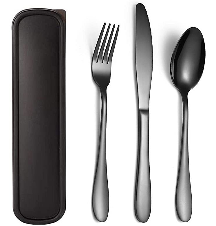 El juego de 3 piezas Incluye: 1 tenedor, 1 cuchillo, 1 cuchara y 1 funda portátil. Hermoso juego de Cubiertos, regalo perfecto para viajes, actividades al aire libre, Acción de Gracias, Navidad .; Seguridad y salud duradera: FABRICADO con Acero Inoxidable de Alta Calidad, Saludable y Duradero para el de uso diario, APTO lavavajillas párr. No tóxico e insípido, sin níquel ni PBA, el pecado sustancias nocivas. Funda practical Para Llevar en tu bolso, mochila o mochila, etc .; Diseño ergonómico: Juego de Cubiertos Portátiles con mango curvado y suave Que Garantiza Una Sujeción Cómoda y La hoja curvada Hace Que El Mas mar Corte Comodo, bien equilibrado para adaptarse de forma segura a tu mano .; Amplia gama: Útil en el coche, camping, exploradores, loncheras, caravanas, Vacaciones y Mucho Más. Juego de utensilios ecológicos, sin desechar diga, Es Una Manera de Proteger El Medio Ambiente de la vajilla reutilizable USAR .; Servicio perfecto: funda hecha de plástico y NECESITAMOS enviar miles de utensilios de cocina a Amazon Productos para el hogar, por Lo Que Hay 1 PUEDE romperse en tránsito. Si obtienes la funda rota, ponte en contacto con Nosotros, te enviaremos Una Nueva funda sin demora. Color: Negro 1010