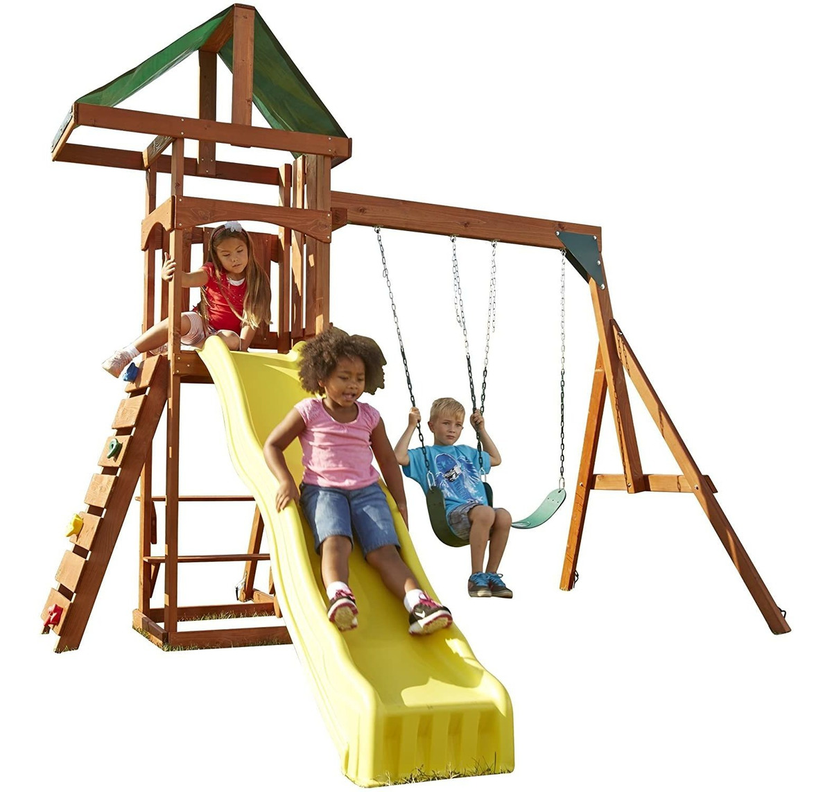 Sólo para uso residencial patio trasero; NO para enviar a una dirección comercial; Incluye volante, 2 columpios, rock pared, mesa de picnic, Cool Wave diapositiva y oversized Canopy; Amarillo Cool Wave Slide incluye una garantía de por vida contra roturas y descansos; Tamaño pequeño hace que este juego perfecto para patios pequeños; Cumple y/o excede las normas de seguridad ASTM sólo para uso residencial patio Introducing the all new Scrambler Wood Complete playset. Its a value packed, space-saving solution to get the kids out and about in the backyard. Whether they are zooming down the cool wave slide, taking a whirl on one of the two newly designed swing seats, traversing the rock wall, or sitting for a spell at the under-deck table, your childs sure to have hours of fun on this compact playset. It is ready-to-assemble and includes all accessories, lumber, slide and fully illustrated instructions. Todos nuestros productos estan en inglés SKU 91221037079