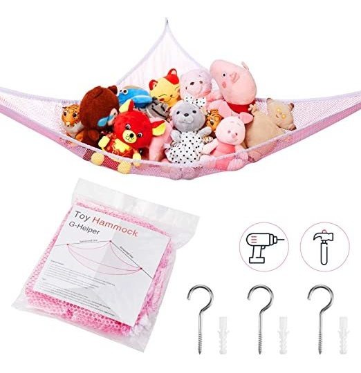 El almacenamiento de los animales de peluche favoritos de su hijo se convierte en una cosa feliz con nuestra hamaca juguete gigante de los animales de peluche. La gran malla triangular hamaca puede cuelga convenientemente en una esquina de la pared y tiene el valor de una selva de animales de peluche, eliminando el desorden y liberando espacio de juego valioso para su pequeño.