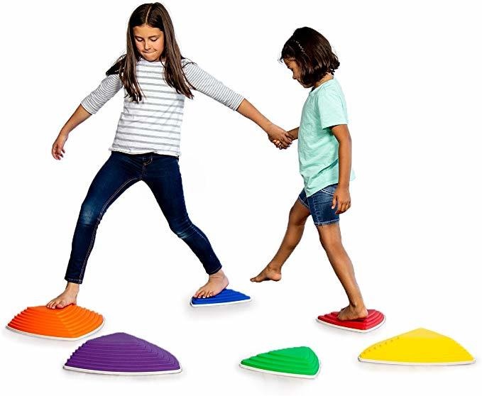 RockSteady Equilibrio Stepping Stones están diseñados de manera que no se vuelque y con el material antideslizante en el perímetro de cada piedra, que pueden ser utilizados en la alfombra, hierba, o las superficies lisas. Este sistema ayuda a los niños a determinar la distancia y la altura, y los trenes músculos importantes que se necesitan para la estabilidad al caminar, saltar y correr. Perfecto para su uso en cuidados de día, escuelas, parques infantiles y hogares.