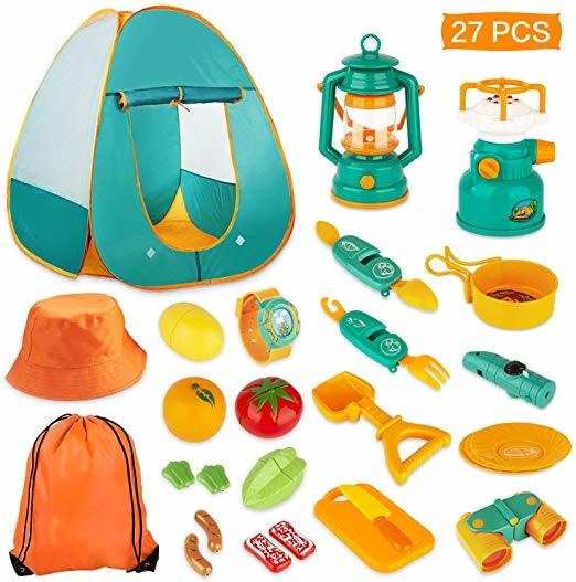 KAQINU 27 PCS niños de camping Conjunto, surja la tienda del juego para niños con juguetes de material de camping, cubierta y herramientas que acampan al aire libre Juego de imaginación Set para el niño Niños y Niñas ¿ aprender jugando – Los niños juegan los juguetes para acampar con los miembros de la familia y los amigos se reúnen, que promuevan la relación entre padres e hijos o de amistad. Esto también ayuda a mejorar las habilidades de comunicación, la cooperación, la creatividad y la motricidad fina de los niños. Juguetes grandes juegos de simulación para párvulos, preescolares, niños, niñas, niños por encima de 3 años de edad .; ¿¿ 27 PIEZAS CAMPING KIT – niños Kaqinu acampar juego de engranajes proporciona 27pcs accesorios de camping necesarias, incluyendo una tienda pop-up juego, sombrero, binoculares, estufa de gas, lámpara de aceite, pala, reloj, cacerola para cocinar, platos, tenedor y una cuchara plegable, 4- en-1 silbato con funciones de linterna, brújula, termómetro, accesorios de alimentos y bolsa con cordón .; ¿¿ PREMIUM CALIDAD Y SEGURIDAD – Nuestros juguetes conjunto de campamento son de grosor no tóxico, el BPA de plástico, libre; segura, resistente y respetuoso del medio ambiente, con el borde redondo suave diseñado, probado para ser seguro para los niños. Se puede disfrutar de juego sin ningún tipo de preocupaciones .; ¿¿ fácil de configurar – La tienda pop-up juego es fácil de montar y desmontar, se puede instalar en pocos minutos. Su pequeño puede incluso probar por sí mismos, para desarrollar sus manos en la capacidad. Limpia fácilmente con un paño húmedo después de que los niños se hacen con ella .; ¿¿ garantizado 100% de satisfacción – Proporcionamos una parte posterior del dinero de 30 días de garantía y sin preocupaciones de 18 meses para todos los niños conjunto de camping tienda de campaña. no dude en ponerse en contacto con nuestro servicio de atención al cliente para cualquier problema. Todos nuestros productos estan en inglés SKU 8111905092