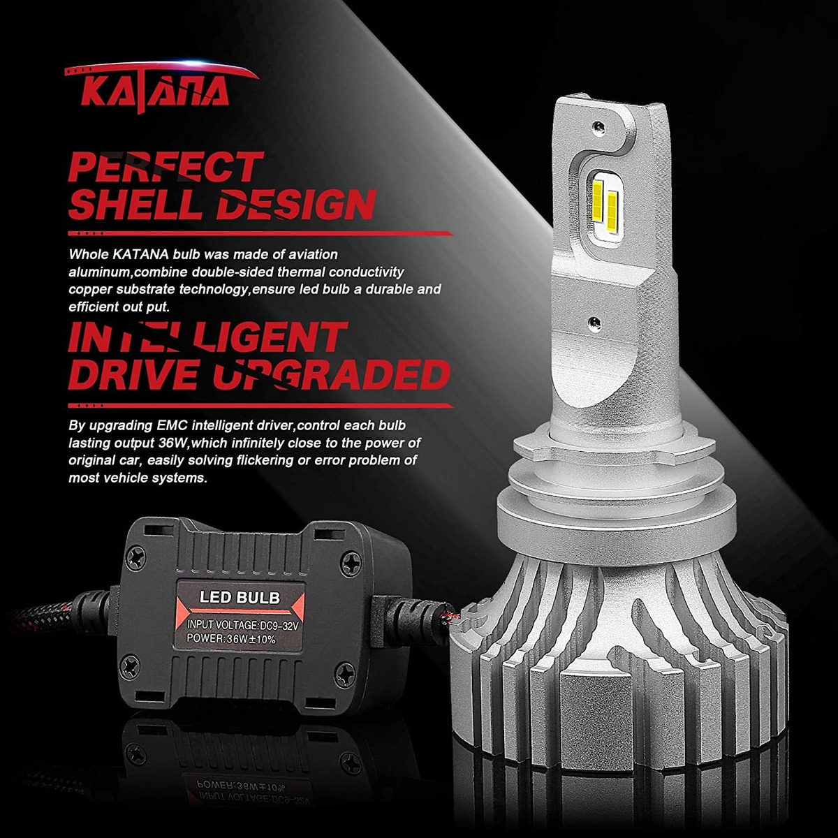 Mas Lejos, mas anchos y Más Brillantes: Elige los focos LED Katana H11, nunca te decepcionarán. personalizados con chips CREE, Cada foco de Faro KATANA PUEDE iluminar Hasta 6.000 lúmenes una K 6500 con luz Extremadamente blanca, 5 Veces Más Brillante Que los halógenos .; Ventilador de doble rodamiento de bola: Diseño Único pecado Cubierta Que reducir eficientemente el ruido, construído con doble núcleo de cobre plegable, disipador térmico y recubierto con aluminio de aviación, combinado con 12.000 rotaciones POR minuto, la ONU garantizan Máximo Enfriamiento y Hacen Que Los Faros Katana de BRILLEN Hasta 55.000 horas .; Diseño Más laterales Delgado: utilizació Un diseño lateral ultradelgado, La Cara LED lateral en solitario Tiene 9/64 Pulgadas. Asegura Una luz uniforme de 360 grados, proporciona ONU ángulo de visión amplio y Más Garantiza tu direction seguridad .; Angulo de haz ajustables de 360 grados: de Acuerdo con la individualidad de Tu Vehículo, Diseñamos El último cuello de Montaje Totalmente ajustable de 360 grados, PUEDES HACER sencilla ONU fit de Angulo Para Una Correcta alineación de los Soportes del foco para Obtener la salida de luz perfecta y el patrón de haz correcto .; Instalación perfecta: la parte del disipador de calor en solitario Tiene 0,92 Pulgadas de Longitud, se ajusta al 95% de Vehículos. Despues de la Instalación, heno Suficiente Espacio para la Respiración de los faros. Se Puede Instalar en 20 minutos. Conecta y listo. Especificaciones: