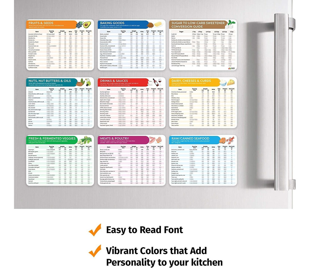 Specification: Keto Cheat Sheet Imanes – 9 Pc – Dieta Keto Para Los Princip