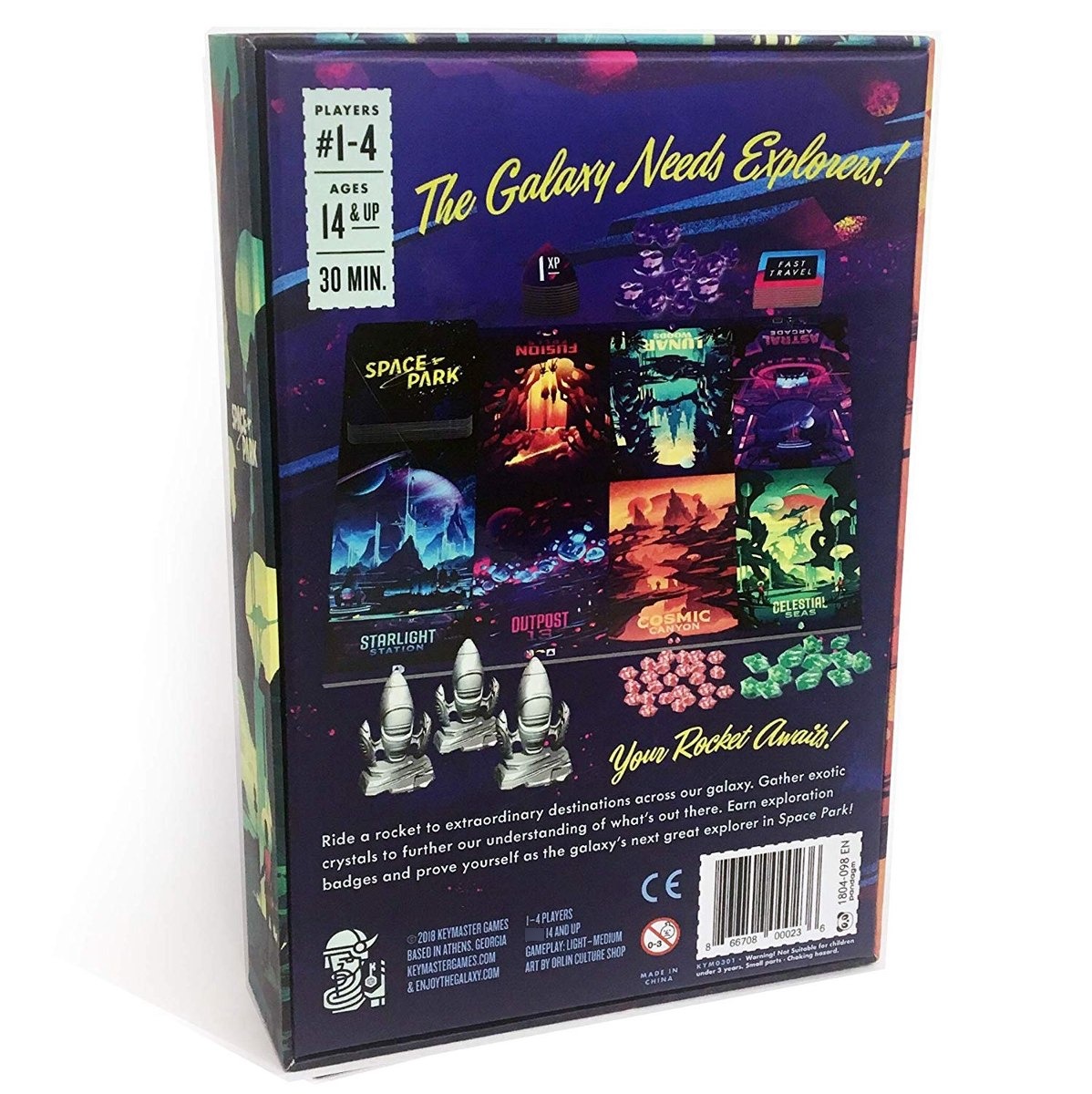 1-4 jugadores; el tiempo de juego de 30 minutos; Miniatures 3 Rocket; 7 destinos únicos; 50 Cristales Acrílico Montar cohetes a extraordinarios destinos a través de nuestra galaxia. Durante sus viajes que se reunirán cristales exóticos que aún más nuestra comprensión de lo que hay. Utilizar estos cristales para completar insignias de exploración y convertirlos en la misteriosa Outpost 13 a probarse a sí mismo como el próximo gran explorador del espacio de la galaxia! Espacio Park dispone de un tablero modular en siete destinos están dispuestos al azar para formar un rectángulo alrededor de la cual los cohetes serán órbita. Durante el turno de un jugador, cohetes estarán en tres de los siete destinos de la junta. Estos cohetes simbolizan lo que están disponibles para un jugador de destinos para viajar a. Una vez que un jugador viaja a un destino mediante la realización de su acción, que los cohetes se mueve al siguiente destino abierto las agujas del reloj. Destinos incluyen acciones tales como la obtención de un determinado tipo de cristal, la adquisición de una nueva insignia para trabajar hacia adelante, girando en sus cristales de Puntos Explorer, o utilizar el explorador explorador-bot de confianza para ayudar a cabo. El jugador con más puntos de explorador al final del juego gana. Todos nuestros productos son de Estados Unidos SKU 8111809642