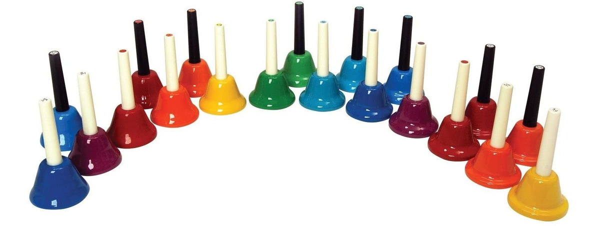 20-Note Handbell Set; Kids Play includes 20 notes: low A to high E in the 20-note handbell set; Kids Play includes 20 notes: low A to high E in the 20-note handbell set Kids Play incluye 20 notas: bajo a alto e en el 20-note Handbell Set. Todos nuestros productos estan en inglés SKU 13102147785