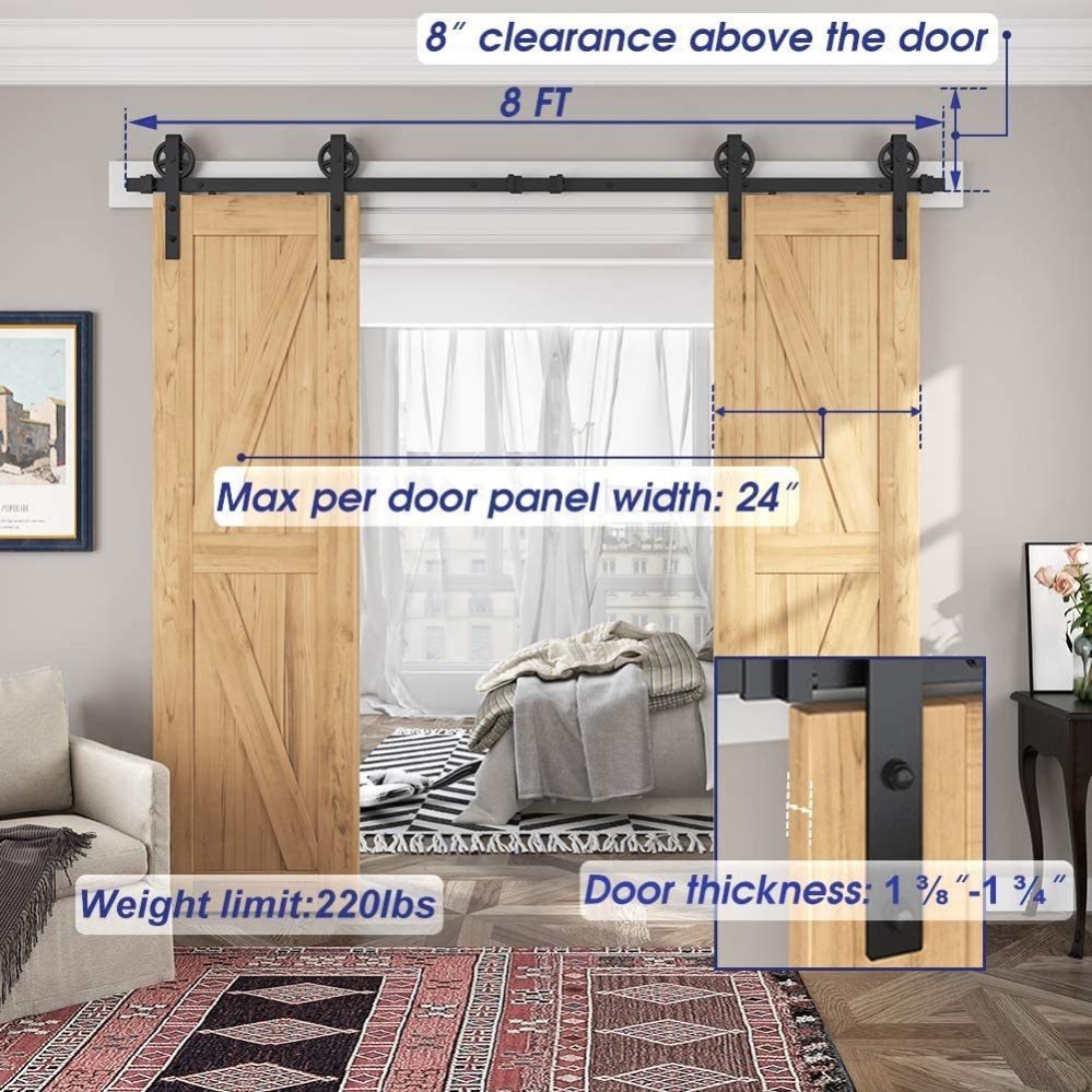 Marca: Smartsmith. Nuestra puerta de granero Rústica con diseño de rueda de radios de Puerta Corredera de aspecto m e INCLUSO con 1/3 del precio del Mercado, PUEDES Obtener Nuestro paquete de Calidad prima industrial en nuestra tienda; Límite de peso de la puerta de 218,3 lbs y Rodillos de rodamiento de bolas: se ajusta un Paneles de puerta de approximately 24.0 en, grosor Aproximado del panel de de la puerta: 3,5 a 1,7 en Desliza Como mantequilla:. El rodillo de rodamiento de Bolas se desliza Suavemente y silenciosamente .; EXPERTAMENTE embalado: un kit de Herramientas Para puerta de granero de 10 pies (2 rieles de 48,0 en, 1 placa de Conexión, 6 Soportes de pista, 4 perchas de acero, 4 topes de puerta, 4 Almohadillas antisalto, 2 Guías de puerta, 1 llave hexagonal de Todos los Otros Accesorios Incluidos ESTÁN Como se ve en las imagenes para pernos de 16,0 en Puerta sin Incluida .; Muy Fácil de Instalar:… Las INSTRUCCIONES de Son faciles de SMARTSMITH Seguir e INCLUSO si no estas muy práctico todavía no tendras ningún Problema, Nuestro servicio de Atención al cliente te ayuda en CUALQUIER Momento pecado Necesidad de Costar dinero para ENCONTRAR ONU carpintero .; GARANTÍA:. 100% GARANTÍA de devolución de Dinero – SMARTSMITH Productos Vienen con 3 años de Garantía de marca Ha Pasado 120.000 Pruebas de Apertura y Cierre. Rodamientos de Más de 220 libras es Nuestra prueba. Nombre del Talle: 8 pies de doble puerta Todos nuestros productos estan en inglés SKU 12062108023