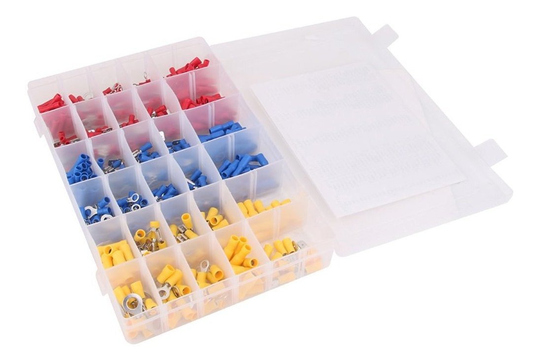 Material: Cobre + PVC + hojalata .; Colores: rojo (190 piezas) + azul (190 piezas) + amarillo (100 Piezas) .; 480 piezas surtidas de terminales de cable a Presión en Diferentes Selecciones y TAMAÑOS populares .; Todos los kits de terminales eléctricos ESTÁN Cerrados En un estuche plástico para FACIL ACCESO .; Este conjunto de Conectores de cable automotor this Aislado e impermeabilizado. Todos nuestros productos estan en inglés SKU 21052020723