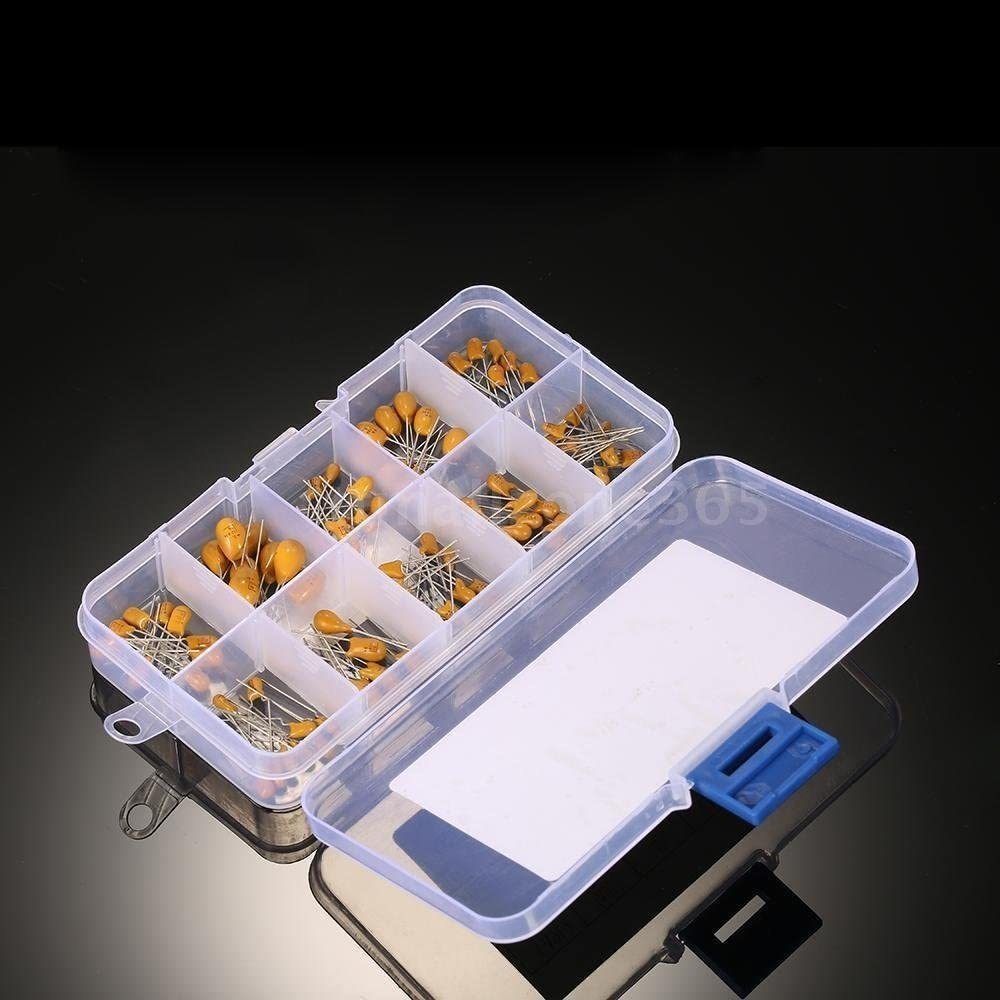 10 Valor 100pcs Estuche Surtido tantalio Capacitor con caja de plástico; Voltaje: 16V Tolerancia: 10% .; 100PCS 10 valor, cada valor 10pcs; Alta precisión y estabilidad; Muy cómodo y práctico; Amplia aplicación en la computadora, el procesamiento de datos, telecomunicaciones, control industrial, etc. Especificaciones: