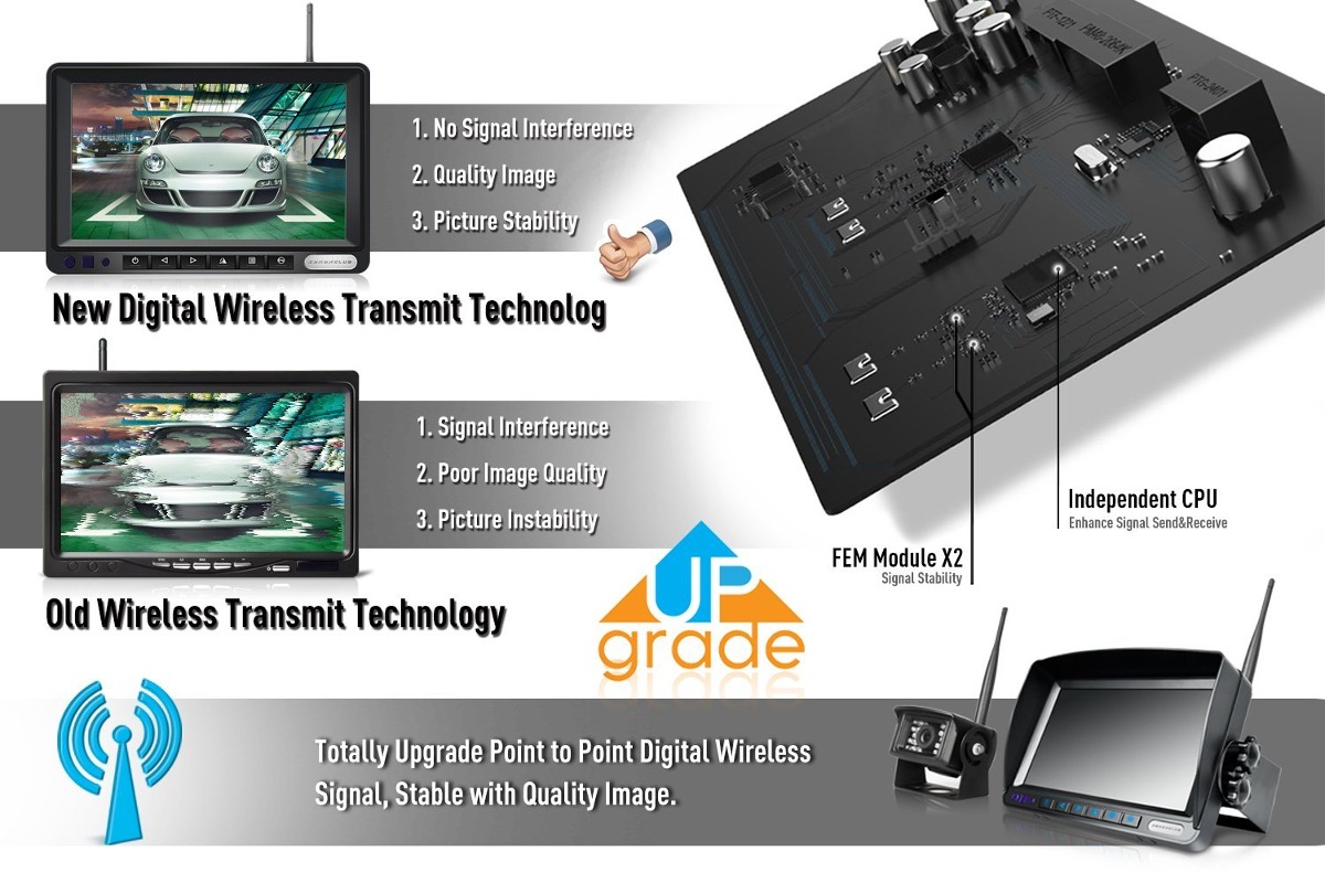 Kit inalámbrico digital Sistema de reserva de la cámara, ninguna interferencia, IP69 a prueba de agua visión posterior sin hilos de la cámara + 7’ ’sin hilos del LCD monitor de marcha atrás para camiones / semi-remolque / Caja de Camión / RV (W01 – 7 pulgadas) Adicional Filtrado Todos nuestros productos son de Estados Unidos SKU 14021800187