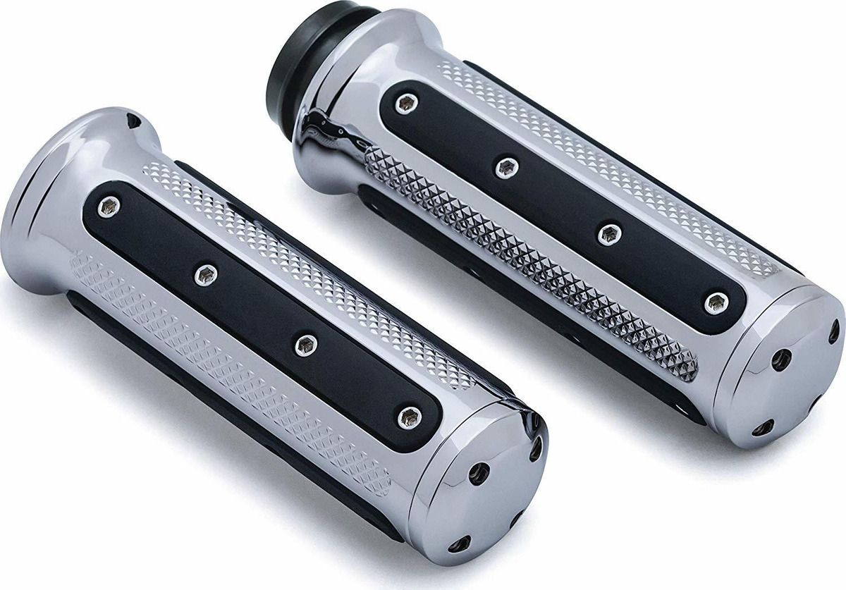 Las empuñaduras acelerador electrónico Kuryakyn 6122 cromo de la industria pesada son para aquellos que están en busca de que el aspecto industrial grave. Las carcasas de agarre son la construcción de aluminio fundido con el compuesto de caucho EPDM patentada que es suave todavía se amortiguar vibraciones de la carretera y permitir la comodidad para los viajes largos. zonas con estrías entre las almohadillas de goma dan estilo y agarre. Viene a juego con tapas de los extremos de la parte superior de tu aspecto industrial grave. Incluye tubo (1) Chrome agarre del embrague, (1) cromo puño del acelerador, (1) de adhesivo; herramientas sugeridas para la instalación (no incluidos): juego de torx llaves, juego de llaves hexagonales, llaves combinadas, sepa utilidad, 80-100 papel de lija y disolvente adhesivo. Las empuñaduras acelerador electrónico Kuryakyn 6122 cromo industria pesada son compatibles con los modelos de Harley-Davidson: ’08 -’19 control electrónico del acelerador (excluye ’19 FLTRXSE). Todos nuestros productos estan en inglés SKU 6012014773