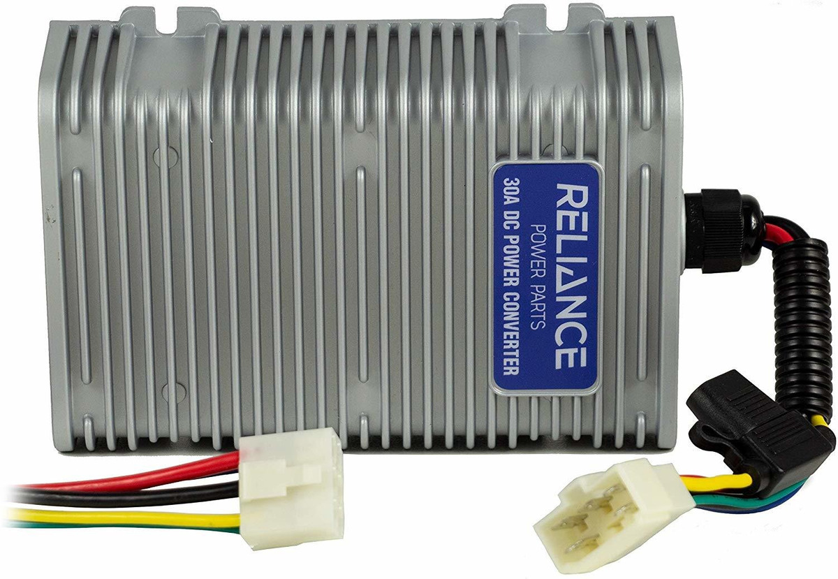 Nuestro reductor de tensión o un convertidor de corriente continua reduce su 48 voltios o 36 voltios carrito de golf eléctrico de 12 voltios para funcionar todos sus accesorios eléctricos. Ya que conecta a todo el paquete de baterías en lugar de una sola batería, este convertidor prolonga la vida de sus baterías .; carcasa de aluminio con recubrimiento de polvo con diseño de disipación de calor; 30 salida del amplificador permite que varios accesorios a ser conectados y alimentados al mismo tiempo; Incluye cable flexible de cableado e instrucciones para facilitar la instalación; Muy recomendable para EZGO eléctrica, Club Car, carritos de Yamaha, no es necesario para los modelos de gas reductor de tensión nuestra dependencia o convertidor de corriente continua reduce su 48 voltios o 36 voltios carrito de golf eléctrico de 12 voltios para funcionar todos sus accesorios eléctricos. Ya que conecta a todo el paquete de baterías en lugar de una sola batería, este convertidor prolonga la vida de sus baterías. La salida de 30 amperios permite múltiples accesorios para estar conectado y encendido al mismo tiempo. Todos nuestros productos estan en inglés SKU 6012016729