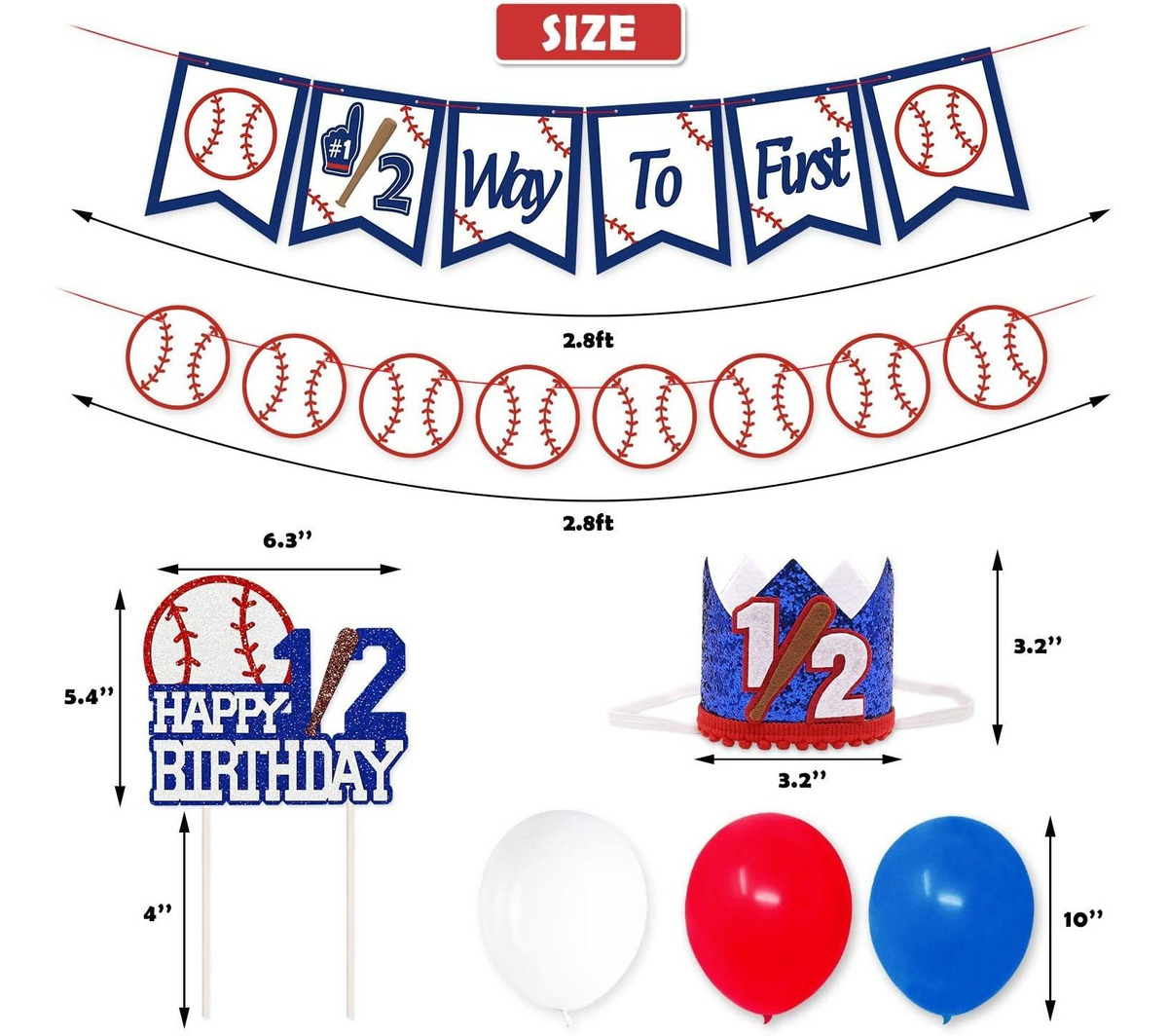seis meses signos de una gran cantidad de grandes hitos del desarrollo de su bebé. Por qué no grabar este importante momento de su pequeño bateador Las decoraciones Kit de béisbol fiesta de cumpleaños mitad ofrecerá todo lo necesario para decorar su béisbol o deportes temáticos media fiesta de cumpleaños, baby shower o como telón de fondo la torta de la rotura violenta, apoyos de la foto .; Suministros béisbol mitad de cumpleaños – El paquete incluye 1 juego Medio camino a primera Bandera, 1 juego de béisbol Garland, 1 juego Feliz Cumpleaños 1/2 primero de la torta, 1 juego de 1/2 de cumpleaños Corona Sombrero y 30 pcs decoraciones del partido globos (10 ) .; superiores de la calidad y tamaño perfecto – La bandera y la guirnalda están hechas de cartulina de alta calidad de impresión profesional con el adorno de torta y la corona están hechos de materiales brillantes de alta calidad, brillantes y sin polvo caído Cada bandera es de aprox 2.8ft largo… El primero de la torta es de aproximadamente 6,3 pulgadas de ancho y 5,4 pulgadas de altura, y los picos son de 4 pulgadas de largo, medida sobre 3,2 de altura x 3,2 de ancho, que es cómodo y ajustable con una banda elástica .; fácil de configurar -. El béisbol 1/2 cumpleaños Banner y Garland béisbol vienen pre-ensamblados y se puede colgar en cualquier lugar que desee. un partido bien de banners, primeros de la torta y globos de la fiesta va a crear un ambiente de fiesta instantánea. Sea creativo con sus ideas de la fiesta de bricolaje y dejan inolvidable recuerdos con nuestra P béisbol mitad cumpleaños artístico Decoración Kit .; 100% GARANTÍA – Si no está satisfecho con su compra del Kit Decoración de béisbol fiesta de cumpleaños de la mitad, puede tener un reembolso del 100% y sin condiciones. Todos nuestros productos estan en inglés SKU 4032126486