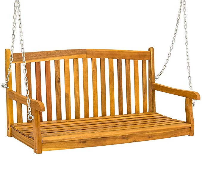Requiere ensamblaje (con el hardware y las instrucciones) Hermoso, clásico listón espalda curvada y diseño de asiento con un acabado elegante marrón natural para complementar la decoración; Disfrutar de su porche o patio y tomar el aire fresco mientras se relaja en nuestro acogedor y cómodo columpio; madera maciza de acacia es resistente a la intemperie para que pueda disfrutar de balanceo en los próximos años; Incluye cadenas de metal de 4 pies recubiertas con óxido de cinc resistente a la corrosión para un durable set-up; Dimensiones generales: 48 “(L) x 22″ (W) x 20.5” (H); Capacidad de peso: 500 lbs. Todos nuestros productos son de Estados Unidos SKU 30081805477