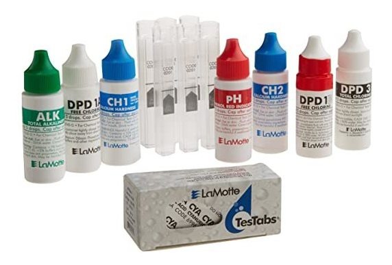 Color-Q Pro 7 kit de reactivos de ensayo de recarga; Incluye una 30 ml botella de reactivo líquido DPD 1A para cloro libre, DPD 1B reactivo líquido para cloro libre; DPD 3 reactivo líquido para el cloro total, pH reactivo líquido para el pH; ALK reactivo líquido para la alcalinidad total, CH2 reactivo líquido para la dureza de calcio; También incluye reactivo CH1 líquido para la dureza de calcio, TesTabs CYA para ácido cianúrico y 5 ml 6 Prueba de color del tubo Este Pro kit de reactivos de recarga 7 prueba de color-Q incluye uno 30 ml botella de reactivo líquido DPD 1A para cloro libre, DPD 1B reactivo líquido para cloro libre, DPD 3 reactivo líquido para el cloro total. También incluye reactivo líquido de pH para pH, reactivo líquido ALK para la alcalinidad total, CH2 reactivo líquido para la dureza de calcio, CH1 reactivo líquido para la dureza de calcio, CYA de prueba aquí para ácido cianúrico y 5 ml tubo 6 de prueba de color Q. Todos nuestros productos estan en inglés SKU 4032130268
