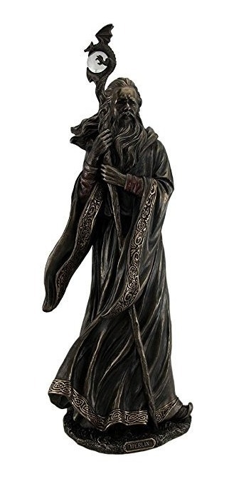 18.5 de alto, 7 de largo, 5,75 de ancho…; Experta en resina moldeada en detalle intrincado esculpida fantástica; Pulido y Acabado de bronce envejecido; Merlin lleva una túnica roja bajo un manto largo con adornado de ajuste en las mangas y dobladillo inferior y lleva un bastón de dragón con una bola de cristal sintético; Grande como un regalo seguro para lanzar un hechizo de emoción en cualquier amante del arte de la fantasía y el colector De leyendas artúricas, el Merlín el mago magnífico viene a la vida en este acabado en bronce antiguo resina fundida estatua perfecto para añadir a o comenzar su propia colección de arte de la fantasía mágica. Merlin muestra el detalle intrincado esculpido y lleva una túnica de color rojo debajo de una larga capa con mangas embellecido y knotwork en el dobladillo inferior. Su pelo largo y la capa se representa soplando en el viento mientras camina con un bastón de dragón rematado con una bola de cristal sintético. Esta estatua fantástica muestra cuidado y atención en todos los detalles, desde su expresión facial grave a los pliegues de su túnica. Esto 18,5 pulgadas de alto, 7 pulgadas de largo, ancho estatua Merlin 5,75 pulgadas es grande como un regalo seguro para lanzar un hechizo de emoción en cualquier amante del arte de la fantasía y el colector. Todos nuestros productos son de Estados Unidos SKU 14051805561