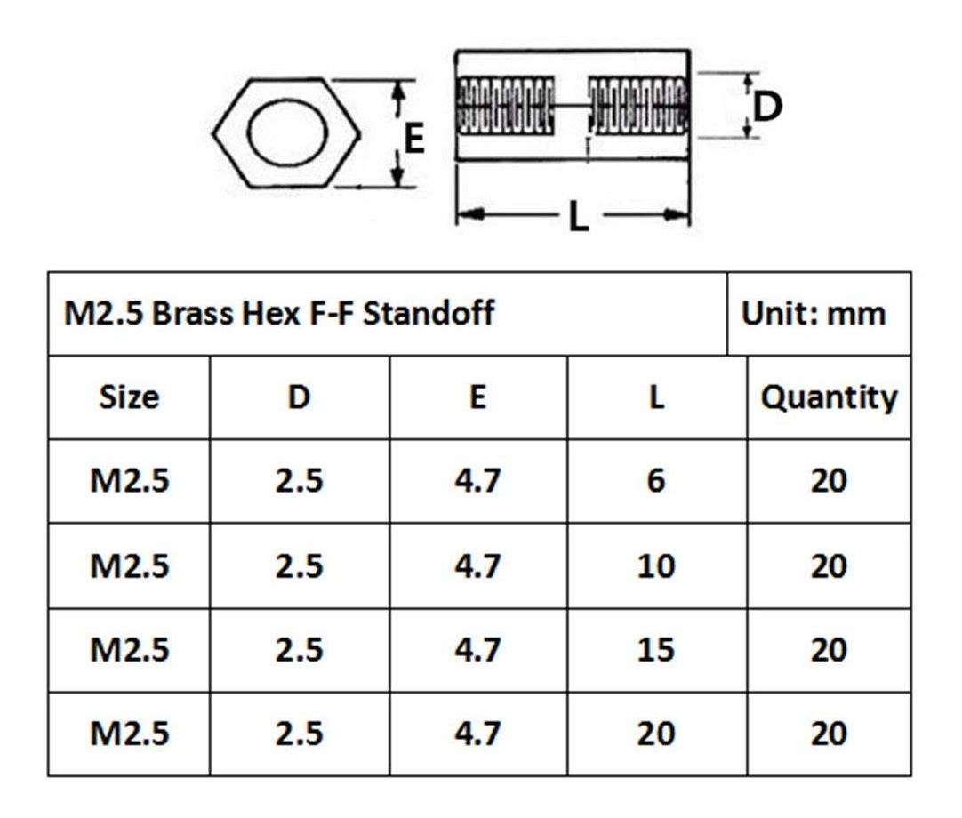M2.5 latón hembra-hembra (15mm) 20pcs