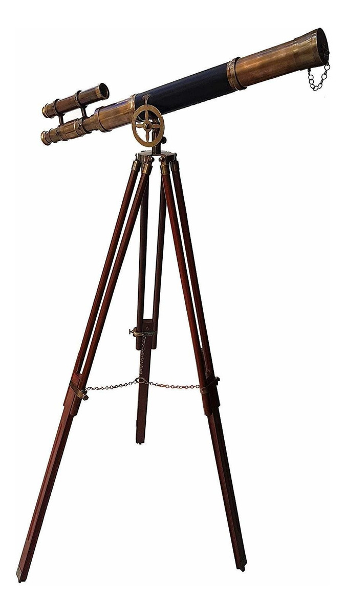 Magnificación; 42 X, Longitud del tubo: de 25″ – 28″ pulgadas, Altura: 52″ pulgadas, Planta Diámetro: 25″ pulgadas, Peso: 8 kg — marina trípode telescopio; Color: latón antiguo y el trípode marrón, material usado: latón y madera. CALIDAD # La calidad es un parámetro donde hacemos sin compromisos. Los productos que ofrecemos a nuestros clientes son de alta calidad, muy bien diseñado y de alto rendimiento. Entregamos nuestros clientes nada menos que lo mejor. Los productos que están disponibles en nuestra organización son de calidad controlada, antes de entregarlos a los clientes .; Uso: Trekking, Observación de aves, regalo de la marina de guerra, de colección, etc # Superior calidad de materia prima se utiliza en la comprobación de la calidad del proceso de fabricación en cada etapa de la fabricación de la prueba individual; Embalaje: embalado en paquetes individuales, corrugado de exportación de embalaje. # La pieza central perfecta y trozo de la historia para acabar con cualquier habitación o al aire libre en su casa, espacio de oficina. increíblemente popular regalo de empresa o la adición perfecta a su colección de objetos antiguos de calidad. Permitir que esta antigua pieza náutica un lugar en su hogar u oficina !; Acerca de acabado Telescopio # La náutico Antiqu Telescopio es una obra maestra náutico en pleno funcionamiento, muy bien montada en un trípode de madera. El enfoque se logra mediante el ajuste del anillo ocular en el tubo del telescopio, con hasta 15 aumentos. protege el objetivo lens.The madera trípode con patas de mesa redonda de madera, cada uno con accesorios de latón macizo y un comunicado de tornillo que le permite ajustar la altura, y la cadena de latón mantiene las tres patas de madera juntos para que el telescopio puede mantener su Todos nuestros productos estan en inglés SKU 8111916643