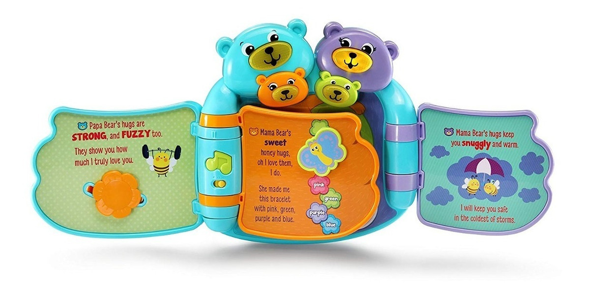 Esto, libro interactivo adorable introduce habilidades lingüísticas tempranas para pre-lectores; La historia de seis páginas está lleno de amor familiar y abrazos grandes de osos, mientras que la enseñanza de los números, formas y colores; Escuchar música y sonidos dulces como pasar las páginas. Presione los cuatro light-up se enfrenta a escuchar frases de cada oso, animando mucho amor y abrazos; Disfrutar de luces y música, mientras que el desarrollo de la motricidad fina de pasar las páginas, deslizando el corazón y torcer a la mariposa; osos libro está dirigido a edades niño de 6 meses a 3 años de edad. 2 baterías AA se incluyen con fines de demostración, vuelva a colocar nuevas baterías de uso sistemático Acurrucarse con su pequeño a medida que lee el abrazo y aprende libro osos. Esto, libro interactivo adorable introduce habilidades lingüísticas tempranas para pre-lectores. Llena de amor de la familia y abraza a Big Bear, la historia de seis páginas enseña números, formas y colores. Escuchar música y sonidos dulces como pasar las páginas. Presione los cuatro light-up se enfrenta a escuchar frases de cada oso, animando mucho amor y abrazos. Disfrutar de luces y música, mientras que el desarrollo de la motricidad fina, girando las páginas, deslizando el corazón y torciendo la mariposa. Cosquillas oso hermano al final del libro para oírlo reír! osos libro está dirigido a edades niño de 6 meses a 3 años de edad. 2 baterías AA se incluyen con fines de demostración, vuelva a colocar las pilas nuevas para el uso regular. Dimensiones del producto: 8.2W x 7.9H x 2.6D. Todos nuestros productos son de Estados Unidos SKU 8111820712