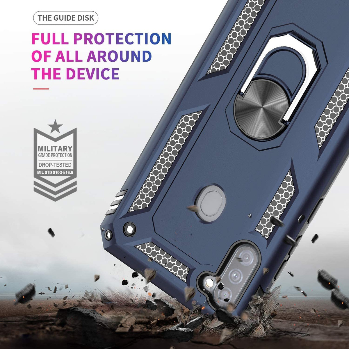 Compatible conEspecialmente diseñado para Samsung Galaxy A11. También viene con 2 protectores de pantalla de vidrio templado.; Protección perfecta Borde único TPU se combina con el PC integrado para proteger tu teléfono de caídas, arañazos y golpes. Protección de grado militar con tecnología Air-Cushion para todas las esquinas y protección completa para tu dispositivo con un diseño delgado.; Diseño de soporte giratorio de 360 El soporte de metal puede girar 360, fácil de girar y resistente en la funda. El soporte integrado te da la comodidad para ver vídeos y películas con manos libres con comodidad y estabilidad deseadas. Además, hoja magnética de metal integrada para una absorción estable, que se puede adsorber directamente al soporte magnético del coche. (No incluye el soporte magnético para coche).; Corte preciso: todos los botones y la interfaz son fáciles de usar para evitar el desmontaje frecuente. Y la funda con recortes perfectos para altavoces, cámara y orificio de carga te permiten un fácil acceso a todas las funciones y conveniente para cargar tu teléfono sin quitar la funda.; Lo que obtienes: nuestros productos vienen con 30 días de garantía. Si tienes alguna pregunta o cualquier cosa que te sientas insatisfecho, no dudes en ponerte en contacto con nosotros por correo electrónico. LeYi estará encantado de resolverlo en 12 horas. Todos nuestros productos estan en inglés SKU 91221080554