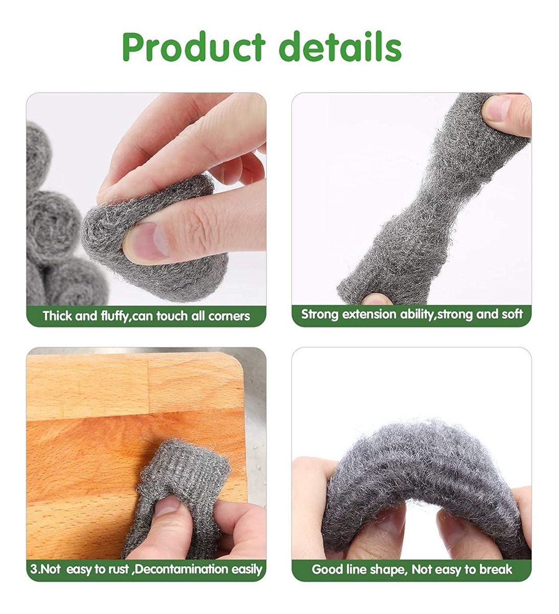 El lavador estropajos están hechos de material de acero con finura de 0000, son de precisión y de alta calidad resistente al uso, con un bonito ductilidad, suavidad y resistencia al desgaste, pueden proporcionar efecto de limpieza ideal, adecuado para todos los días para su uso. Adoptar la ergonomía no herirse las manos.