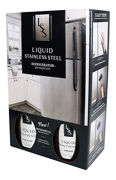 Actualizar el acabado de su viejo refrigerador de acero inoxidable en cuatro horas con un nuevo rollo de pintura hecha con acero inoxidable de 100 por ciento. Líquido refrigerador de acero inoxidable Kit Todos nuestros productos son de Estados Unidos SKU 31071818880
